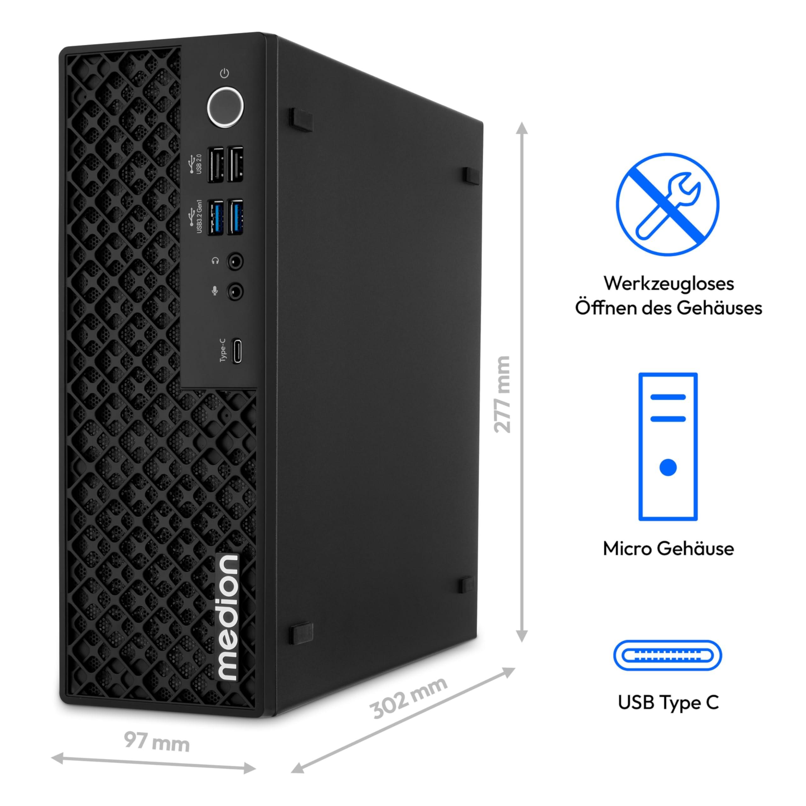 - Contenuto della confezione: MEDION PC Picoworx T80 III (MD340011), mouse cablato, cavo di alimentazione