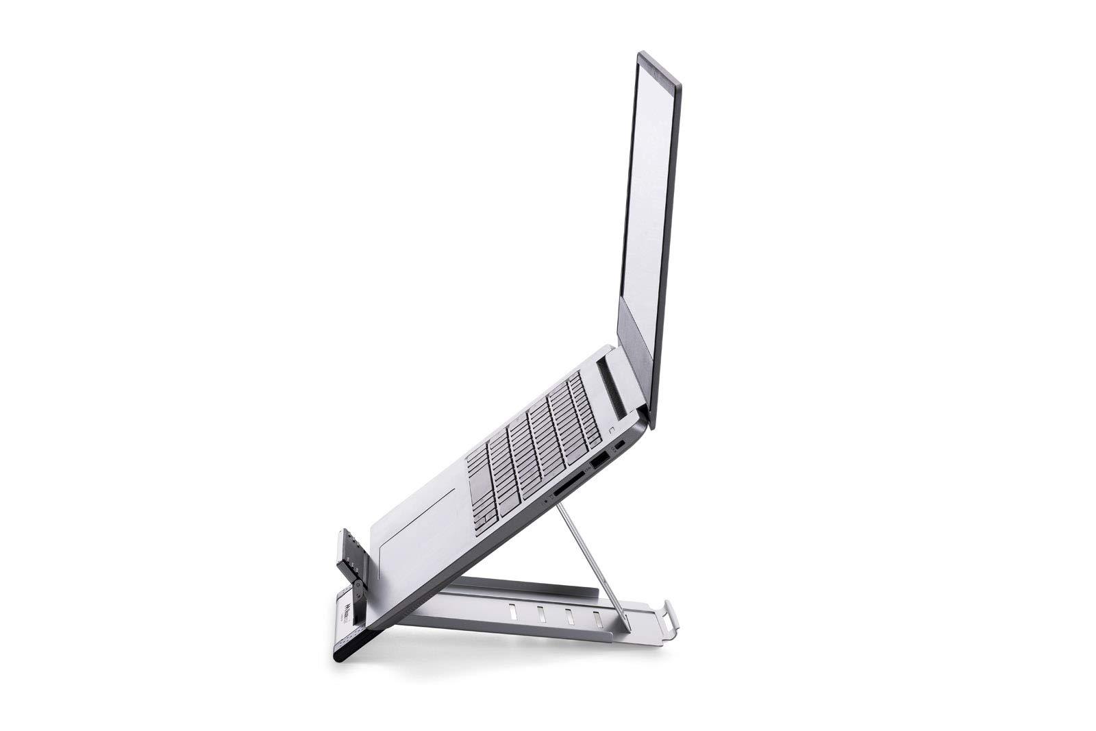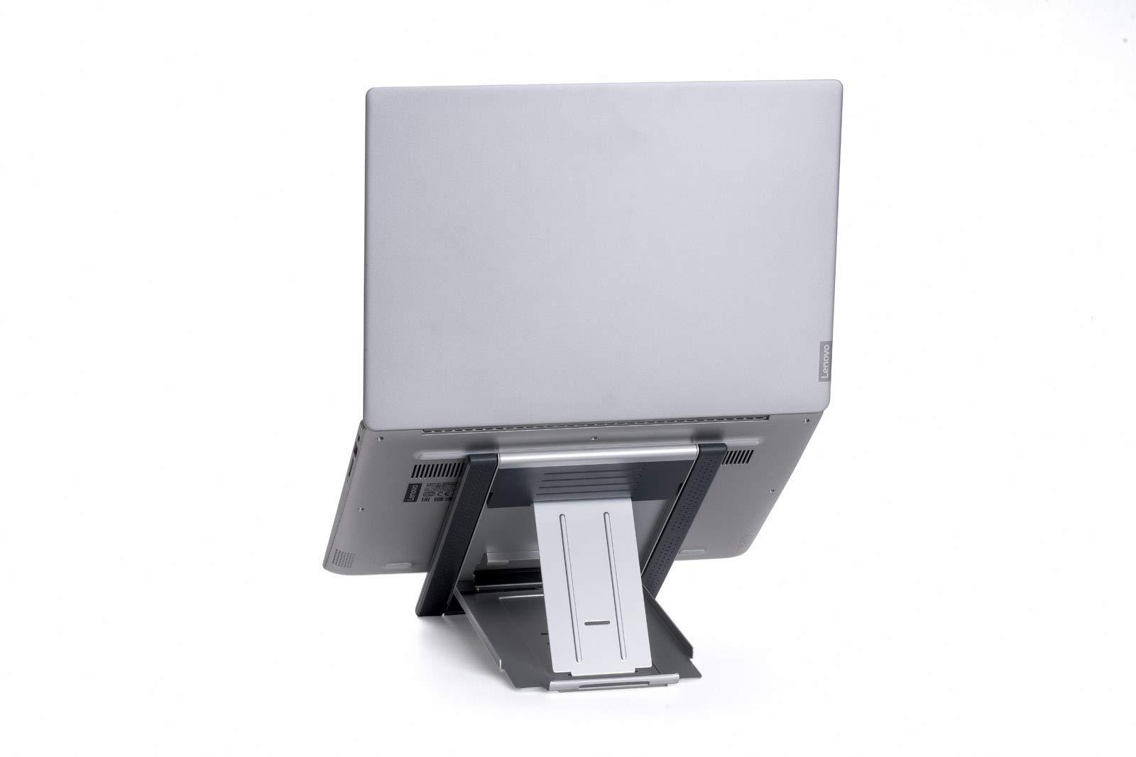 Il supporto per computer portatile/tablet ti aiuta a mantenere la testa in una posizione ergonomica mantenendo gli occhi alla giusta altezza. Ciò mantiene una distanza comoda dal vostro lavoro. Ci sono sei livelli di regolazione dell'altezza visiva. La sua capacità di regolare porta a una migliore dispersione del calore, contribuendo anche a un design compatto e portatile.