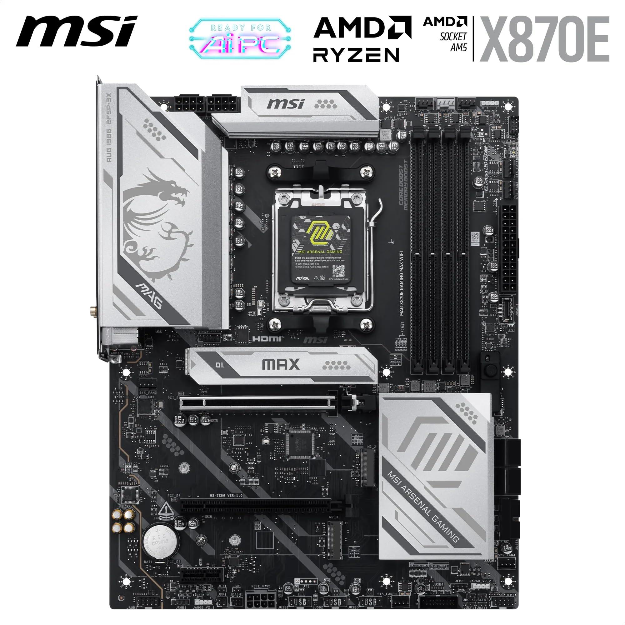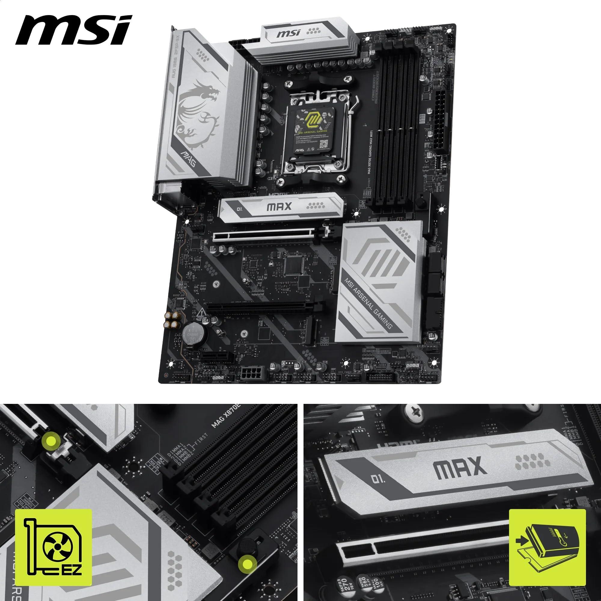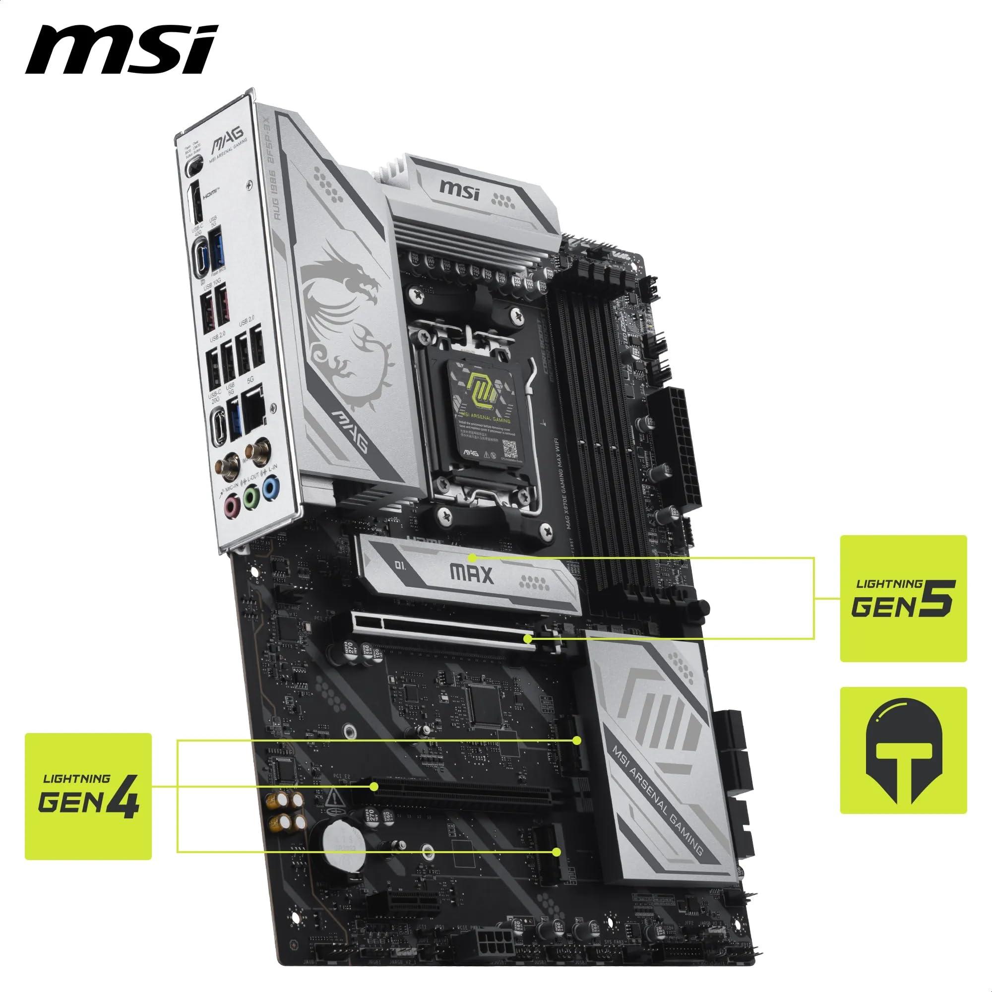 MSI MAG X870E GAMING MAX WIFI – Scheda Madre ATX, Supporto Processori AMD Ryzen 9000/8000/7000 AM5, DDR5 fino a 8200+ MT/s OC, PCIe 5.0 x16, M.2 Gen5, Wi-Fi 7, LAN 5G