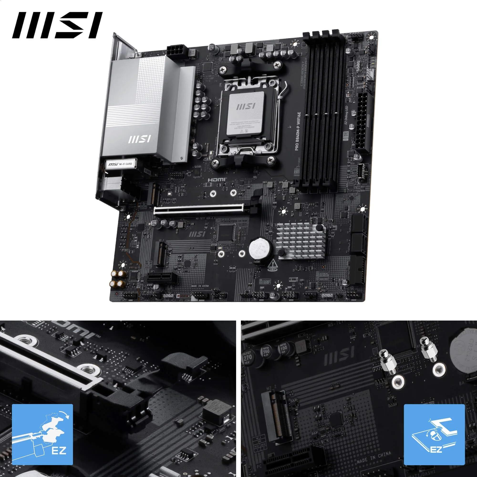 MSI PRO B840M-P WIFI6E, scheda madre mATX - Supporta processori AMD Ryzen 9000/8000 / 7000, AM5 - DDR5 Memory Boost (OC 8000+ MT/s), PCIe 4.0 x16, M.2 Gen4, Wi-Fi 6E, 2.5G LAN