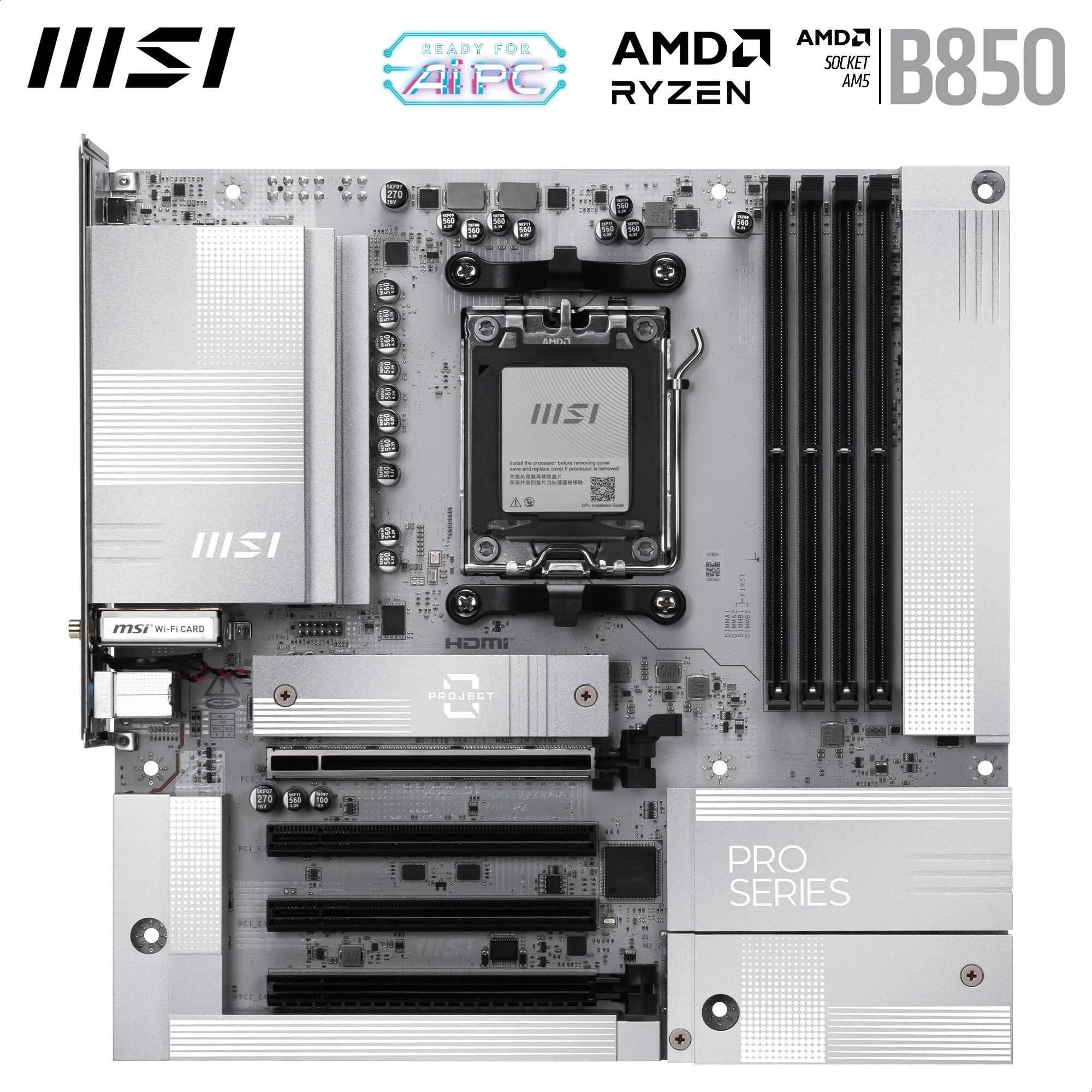 MSI PRO B850M-A WIFI PZ Scheda madre, Back-connect mATX - Supporta processori AMD Ryzen 9000/8000/7000, AM5 - DDR5 Memory Boost (8200+ MT/s OC), PCIe 5.0 x16 e 4.0 x4, M.2 Gen5, Wi-Fi 7, 5G LAN