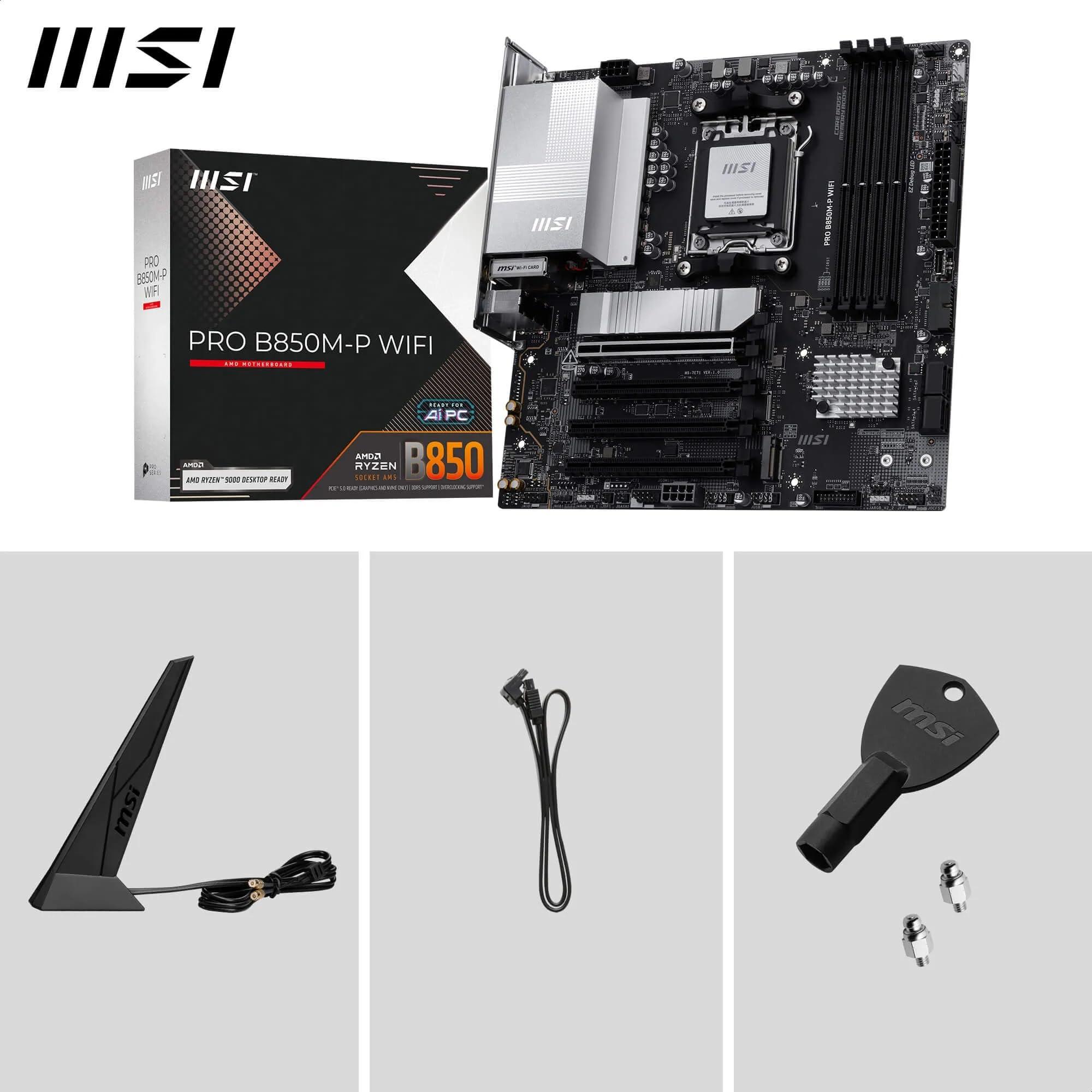 MSI PRO B850M-P WIFI Scheda Madre, mATX - Supporta processori AMD Ryzen 9000/8000 / 7000, AM5 - DDR5 Memory Boost (8200+ MT/s OC), PCIe 5.0 x16 & 4.0 x16, M.2 Gen5, Wi-Fi 7, LAN 5G