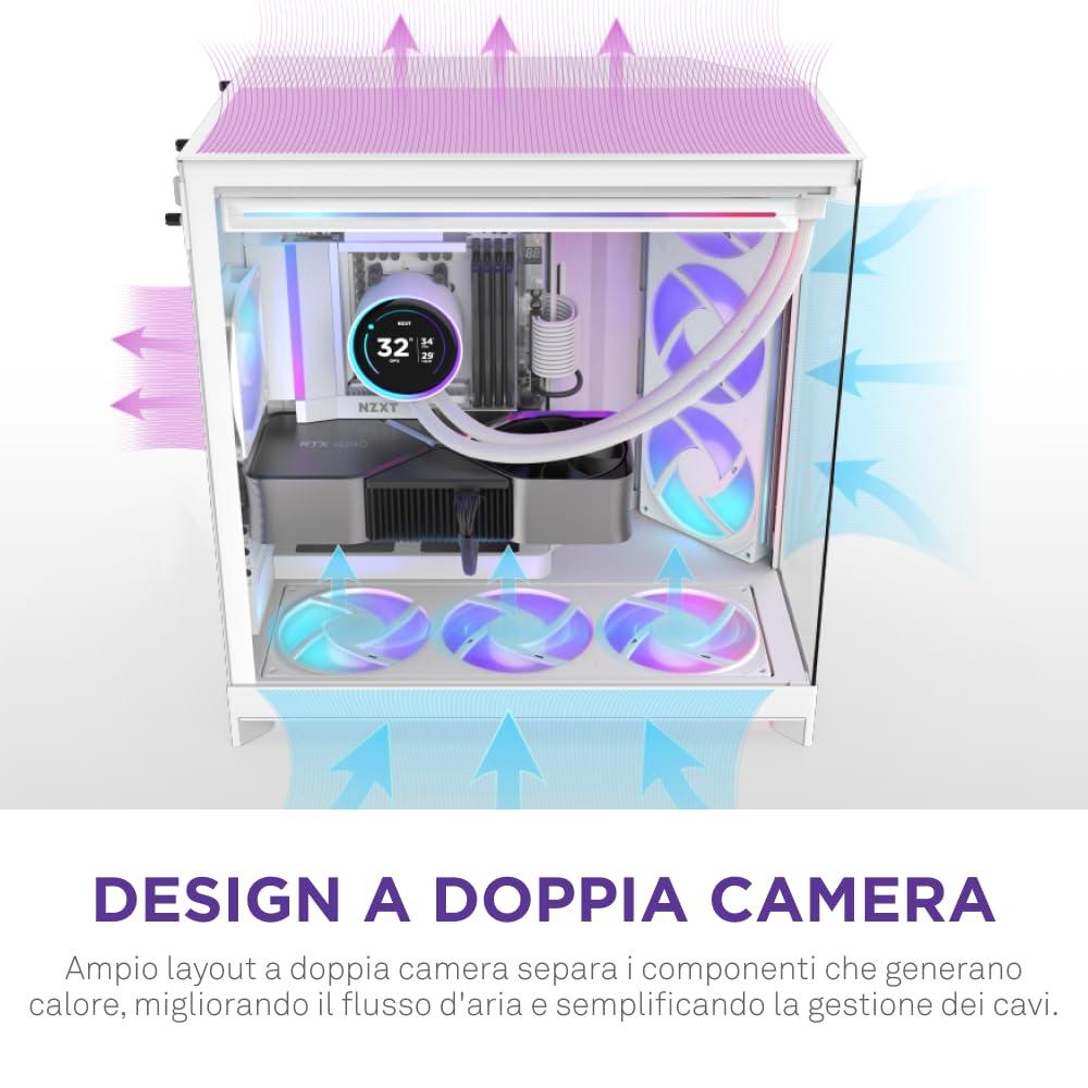 - DESIGN A DOPPIA CAMERA — Separa i componenti principali dall'alimentatore e dalle unità per migliorare le prestazioni termiche e la gestione dei cavi.