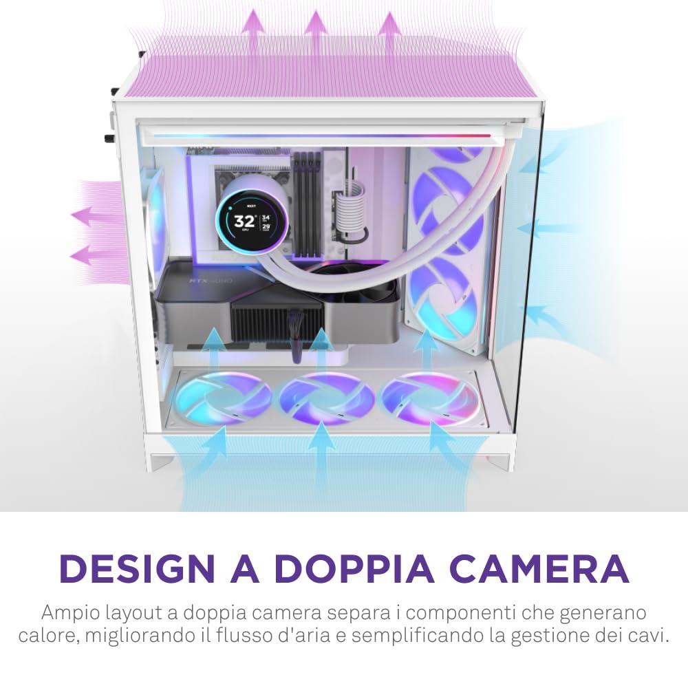 - DESIGN A DOPPIA CAMERA — Separa i componenti principali dall'alimentatore e dalle unità per migliorare le prestazioni termiche e la gestione dei cavi.