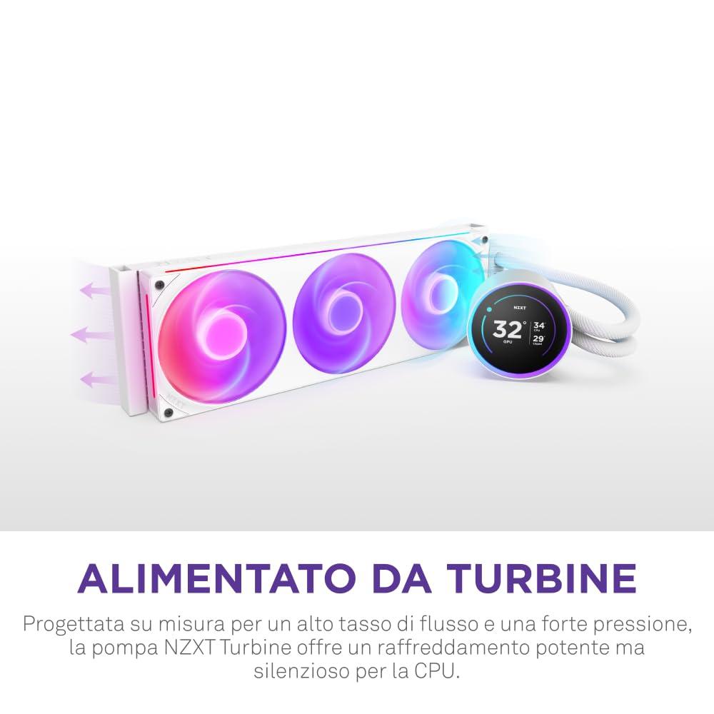 NZXT Kraken Elite 360 RGB - Raffreddamento a liquido CPU AIO 360 mm - Ventola F360 RGB Core - Display IPS LCD da 2,72" personalizzabile - Intel® LGA 1700/1200/115X/1851 - AMD® AM5/AM4 - Bianco