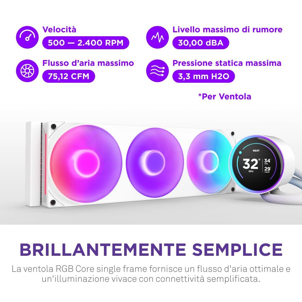 - RAFFREDDAMENTO VIBRANTE: la ventola RGB Core single-frame sul radiatore fornisce un flusso d'aria ottimale e un'illuminazione vivace, oltre a un design elegante e integrato per una facile connettività e controllo.