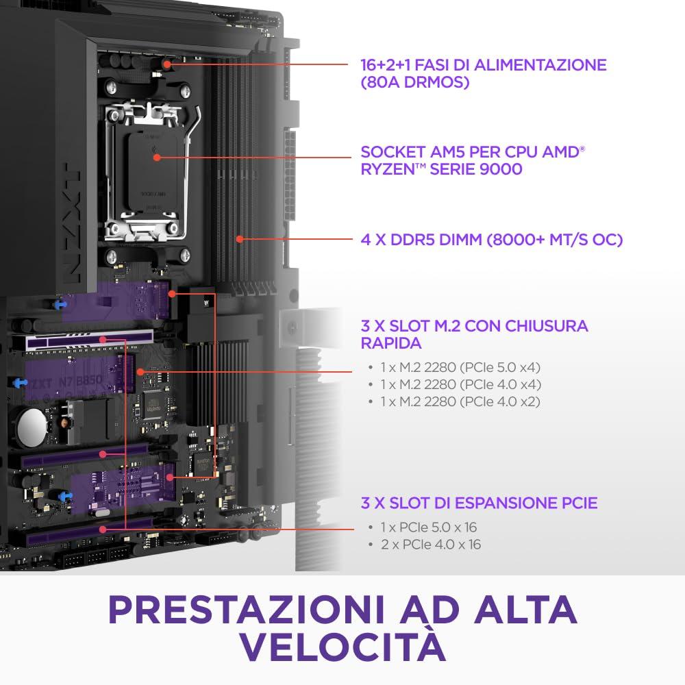 - SOCKET AMD AM5 — Compatibile con processori desktop AMD Ryzen 9000, 8000 e 7000.