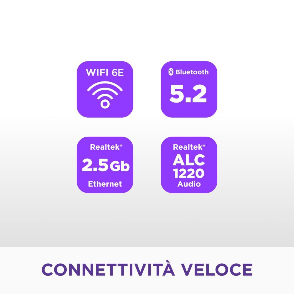 - ESPANSIONE PCIe 5.0 — Uno slot PCIe 5.0 x16 per GPU next‑gen e due PCIe 4.0 x16 per espansioni ad alta velocità.