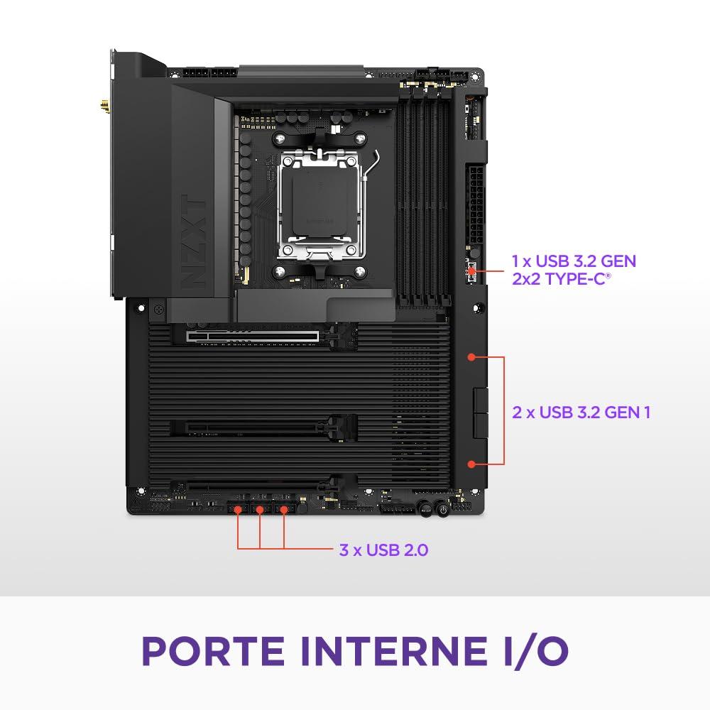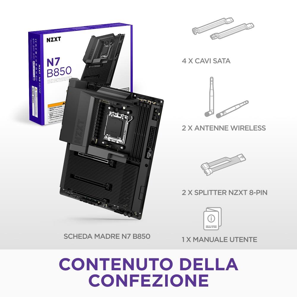 NZXT N7 B850 - Placa base gaming AMD B850 AM5 ATX para Ryzen 9000/8000/7000-16+2+1, DDR5, 3x M.2, PCIe 5.0, Wi-Fi 6E, LAN 2.5GbE, USB 4 – M.2 NVME con cierre rápido – Cubierta completa – Negro