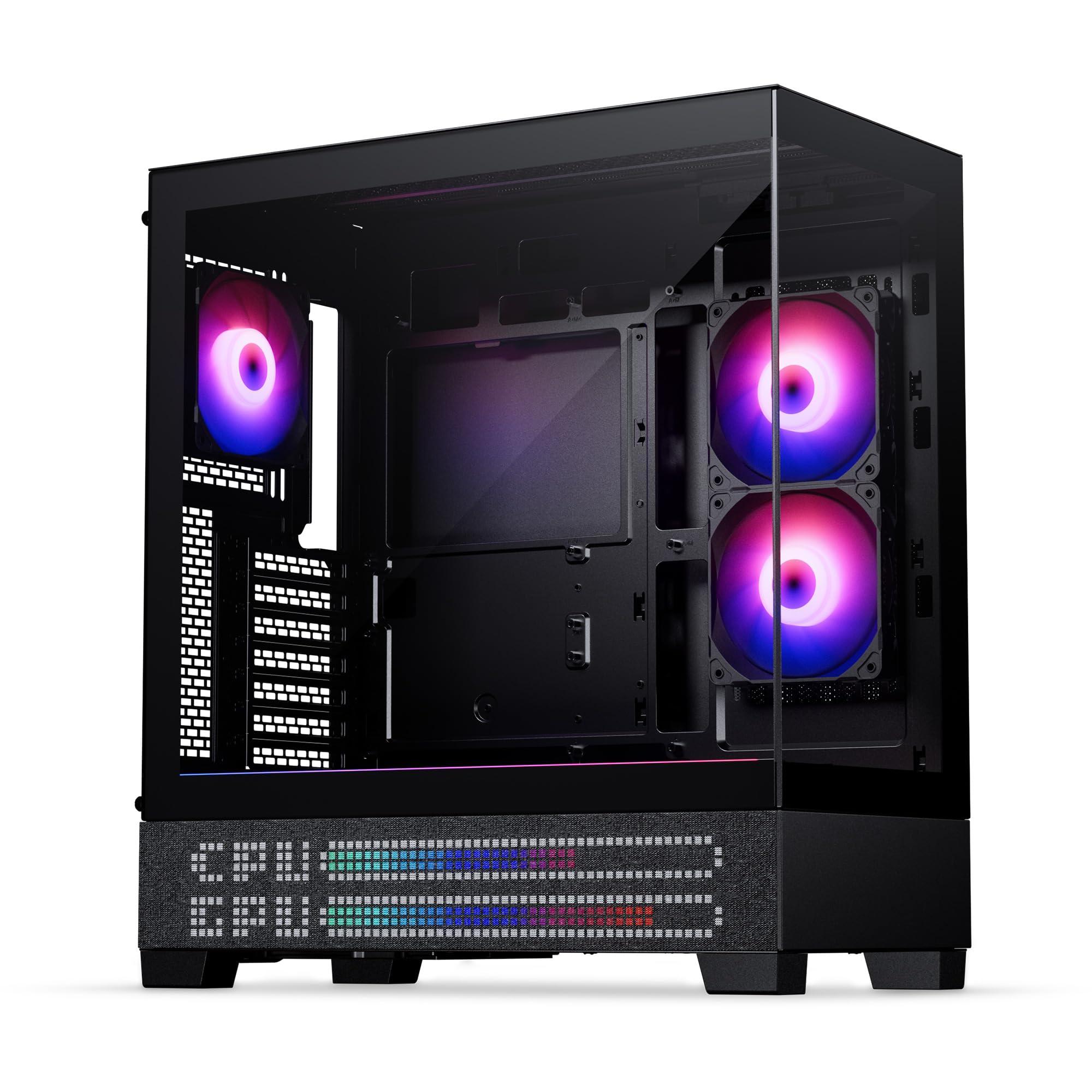 Phanteks XT View Matrix Mid-Tower Gaming Chassis, Schermo Matrix 600-LED, Vetro Temperato Frontale e Laterale, USB-C 3.2 Gen2, 3x Ventole M25-120 D-RGB Incluse, Nero Carbone