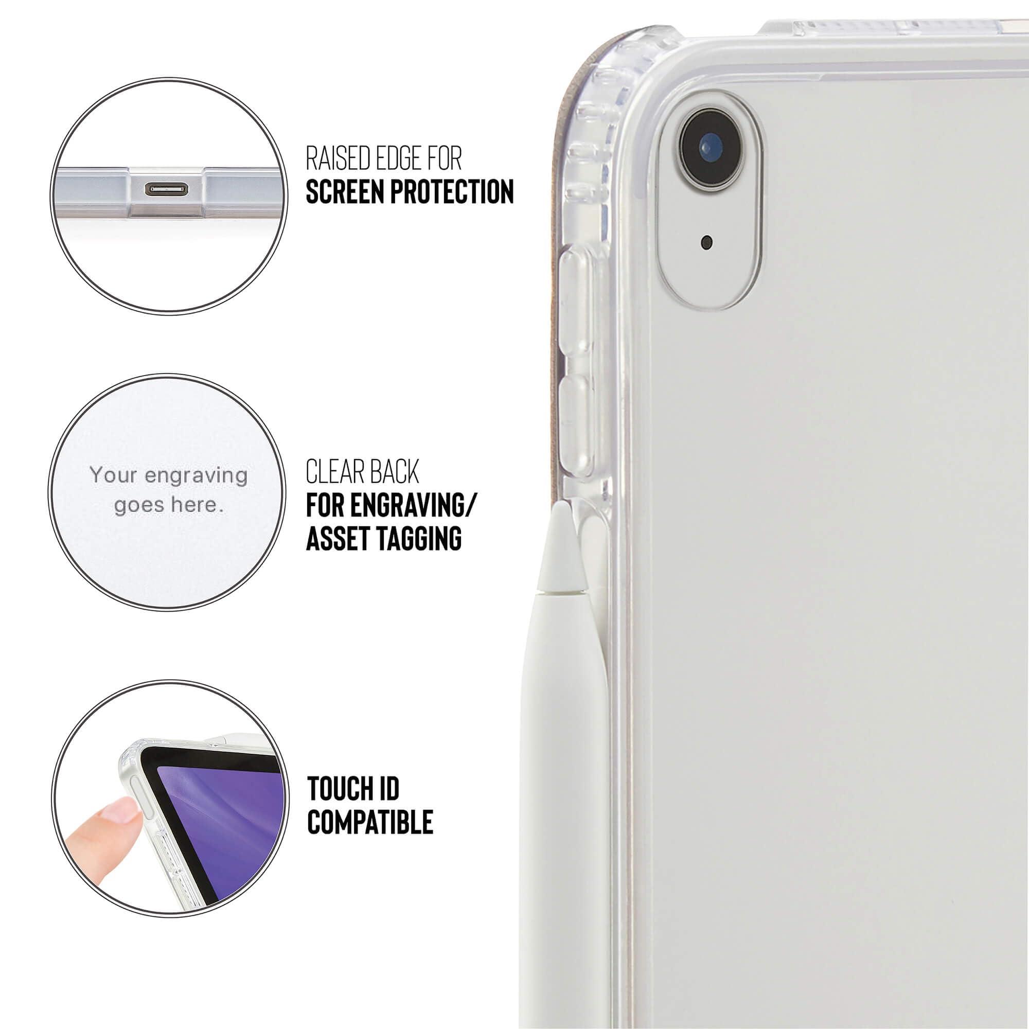 Come utenti iPad e amanti noi stessi, sappiamo che i dettagli contano. Quindi abbiamo progettato la custodia con un retro trasparente in PC, per mantenerla leggera e permetterti di personalizzare il tuo iPad. Abbiamo anche aggiunto una scanalatura discreta per Apple Pencil sul lato, che consente alla tua Apple Pencil di sincronizzarsi e caricare attraverso la custodia e una funzione automatica sleep-wake per estendere la batteria e darti fino al 20% in più tra una ricarica e l'altra.