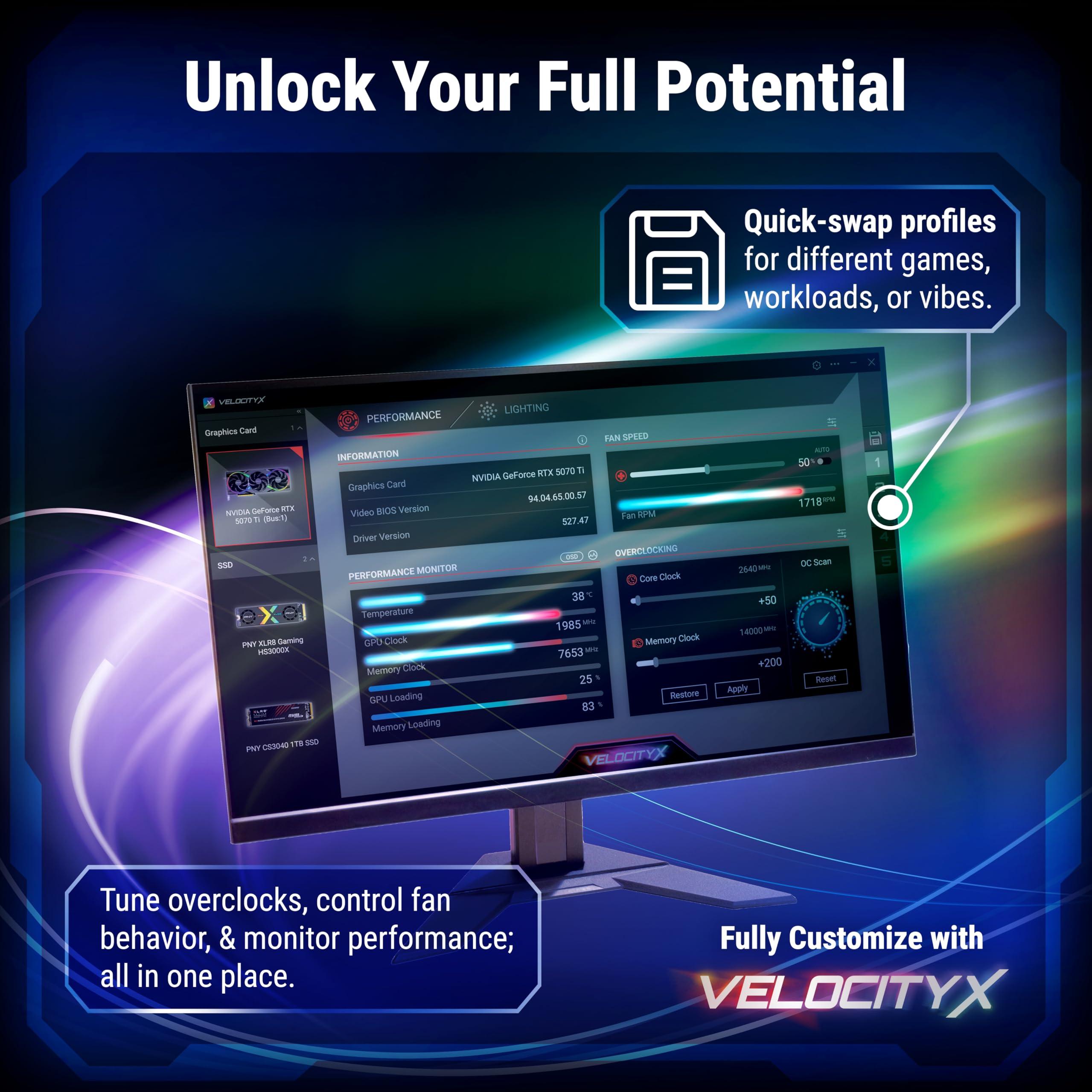 - Software VelocityX: ottieni il pieno controllo sulla tua scheda grafica PNY per massimizzarne le prestazioni