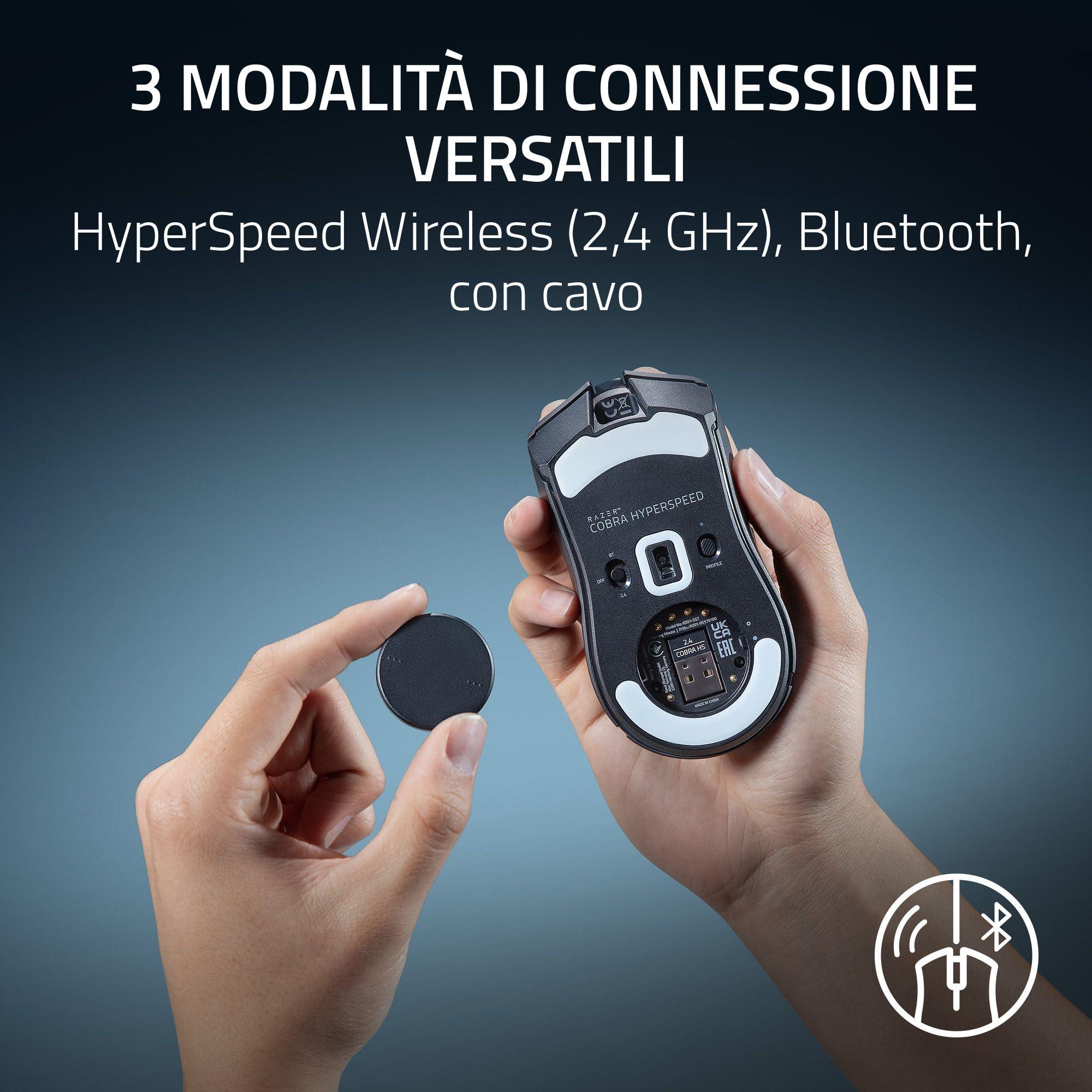 Razer Cobra HyperSpeed - Mouse wireless da gaming leggero personalizzabile - 62g - 26K DPI Sensor - AI Prompt Master - 1000 Hz Polling - HyperSpeed Wireless 2,4 GHZ & Bluetooth - RGB - PC/Mac | Nero