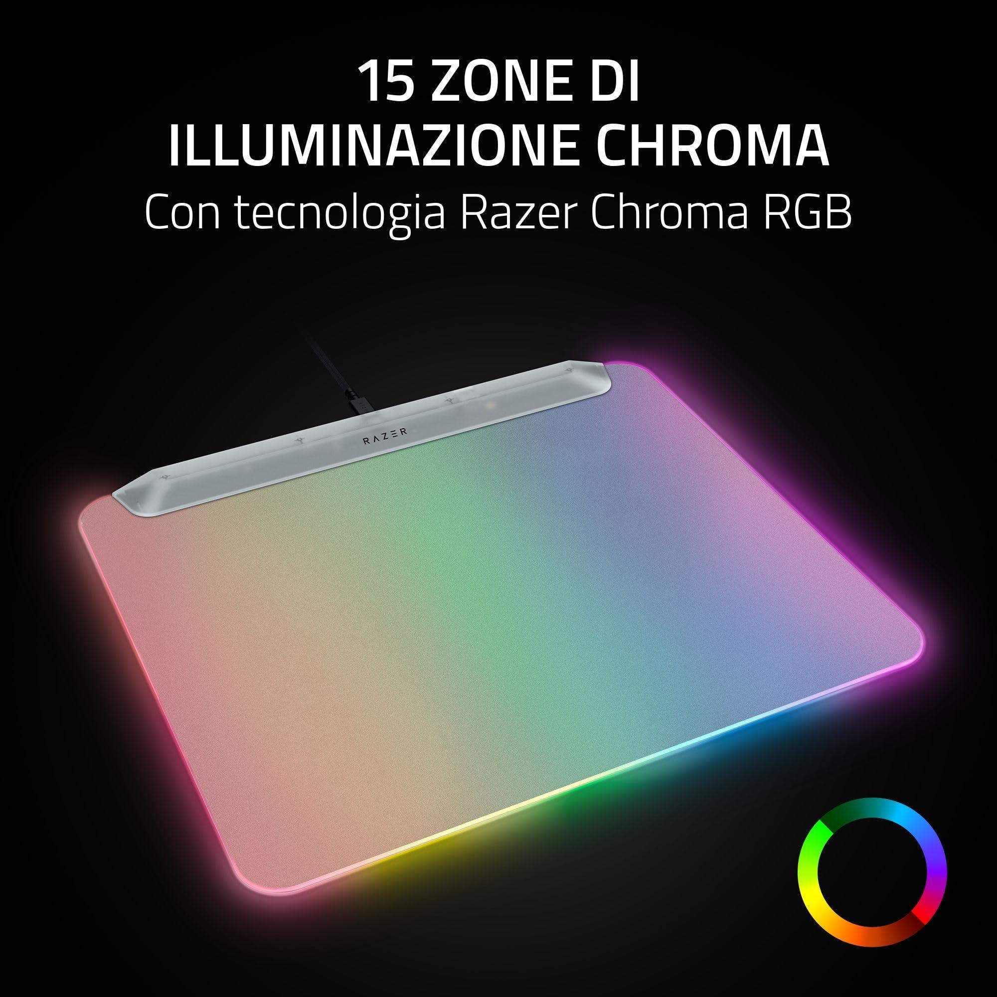 - Illuminazione Chroma a 15 zone - alimentata da Razer Chroma RGB: con 16,8 milioni di colori, innumerevoli motivi, effetti di illuminazione dinamica nel gioco, sperimenta la personalizzazione RGB completa e un'immersione più profonda con il più grande ecosistema di illuminazione al mondo per dispositivi di gioco.