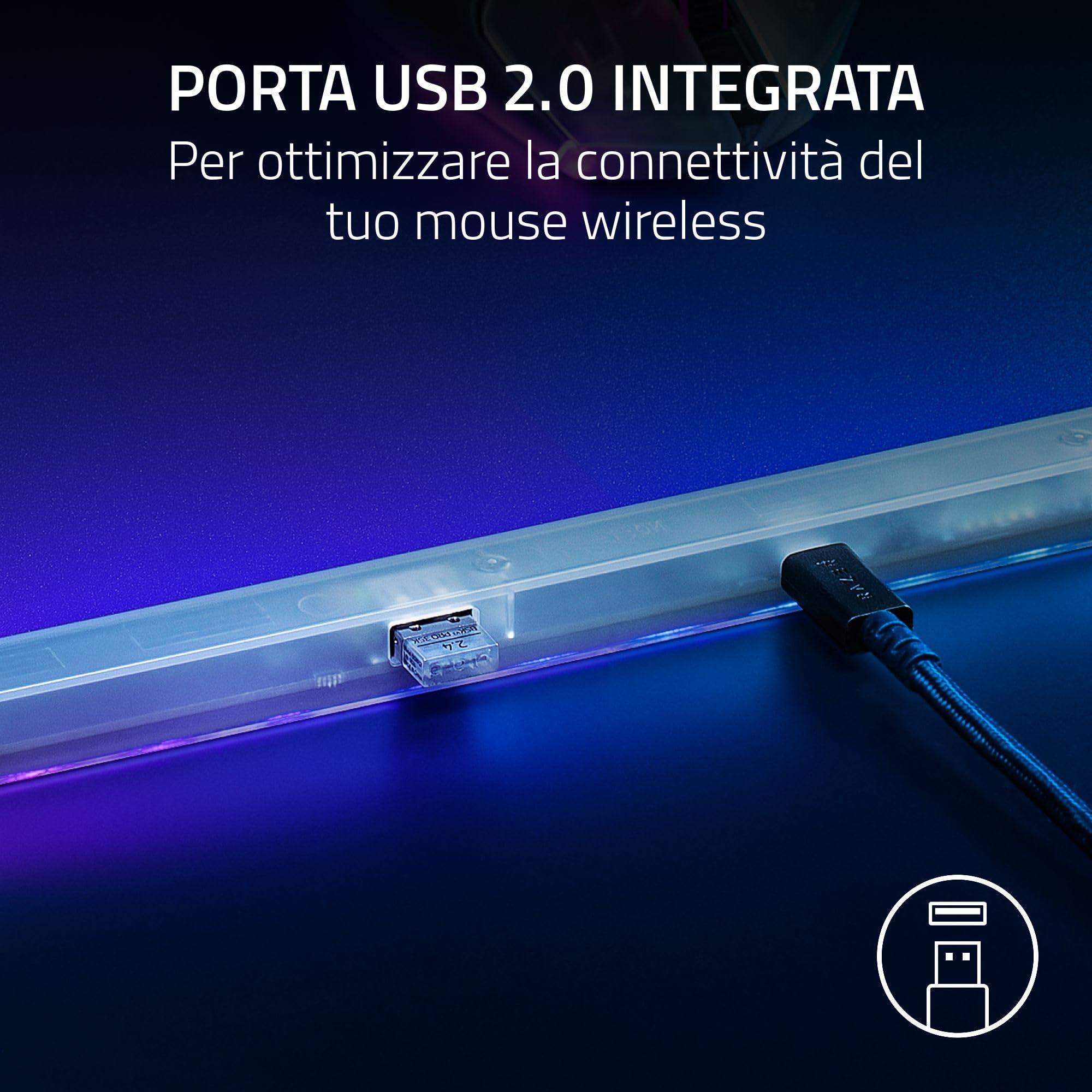 - Porta USB integrata - per ottimizzare la connettività del mouse wireless: La porta USB integrata nel tappetino consente di collegare il dongle del mouse a pochi centimetri di distanza dal mouse, assicurando interferenze minime e massime prestazioni wireless.
