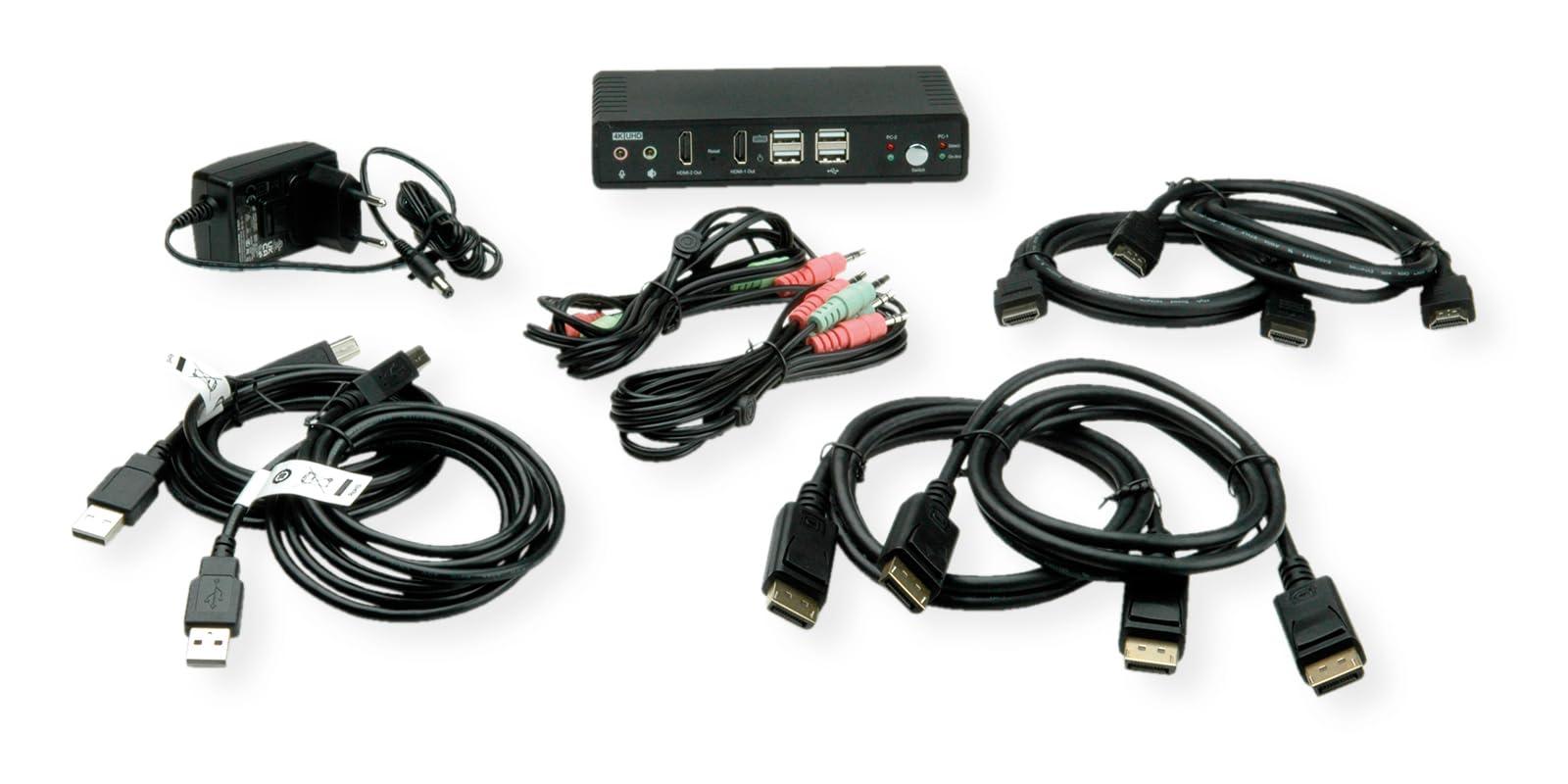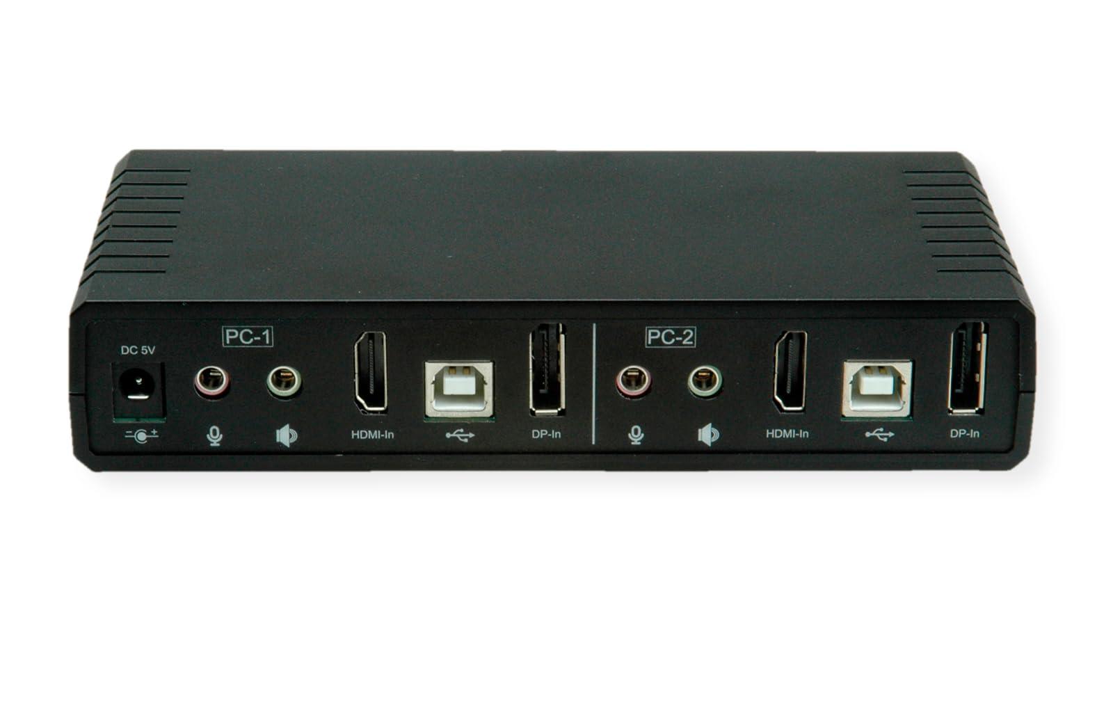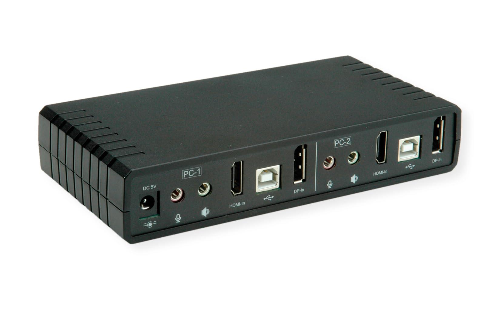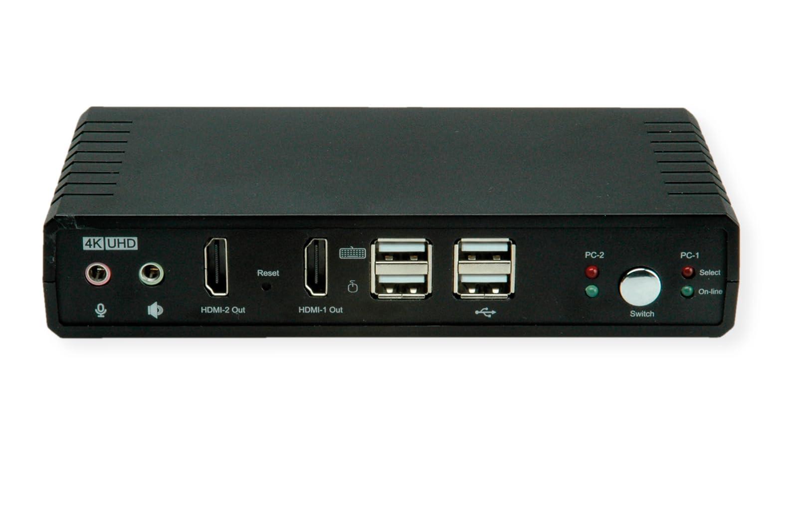 ROLINE KVM - Switch Audio Dual Head HDMI 4K60, 1 utente, 2 PC