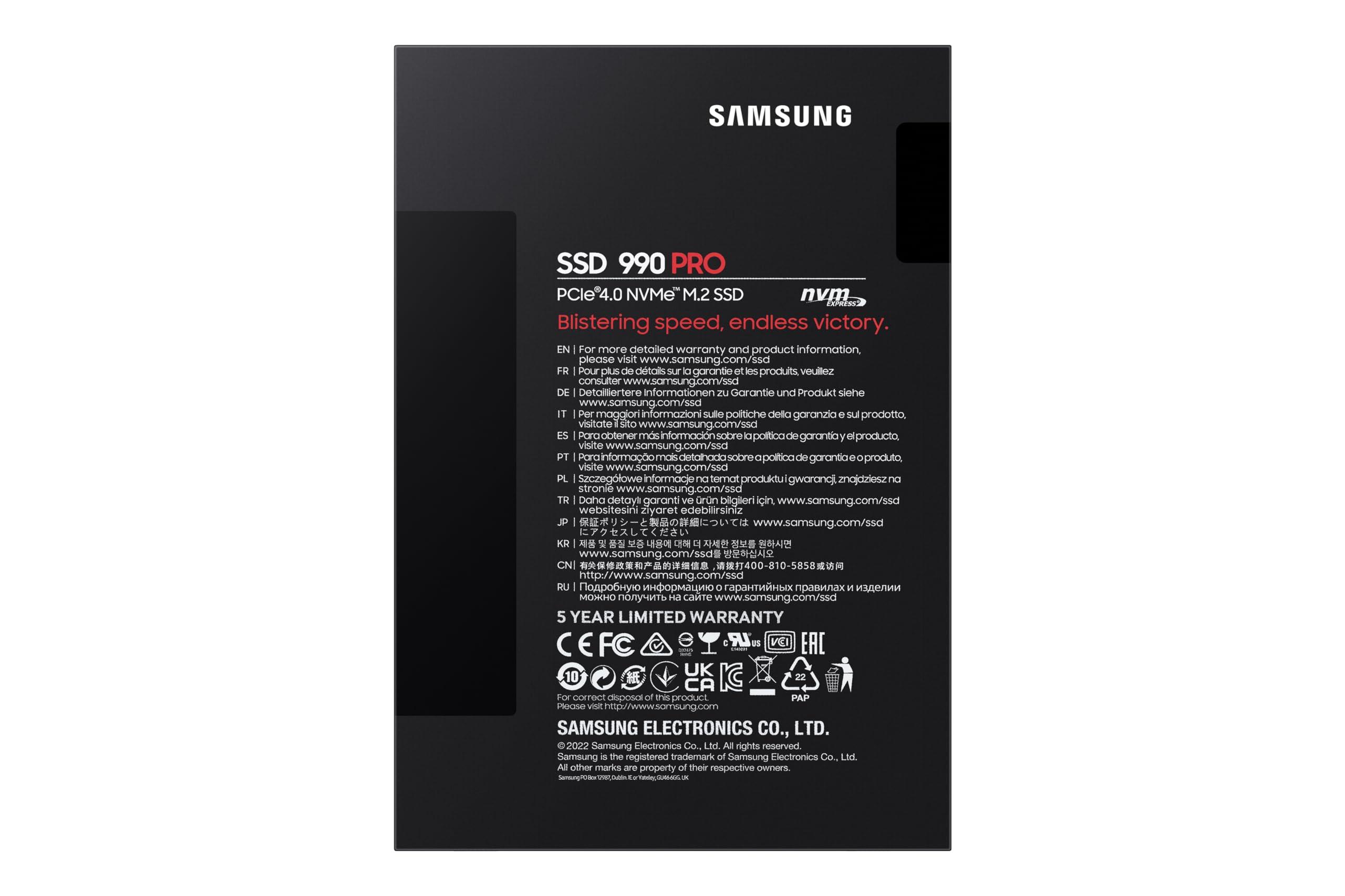 - Contenuto: 1x Samsung Memorie MZ-V9P4T0BW 990 PRO SSD Interno da 4TB, Dimensioni (LxAxP): 8 x 2,2 x 0,23 cm