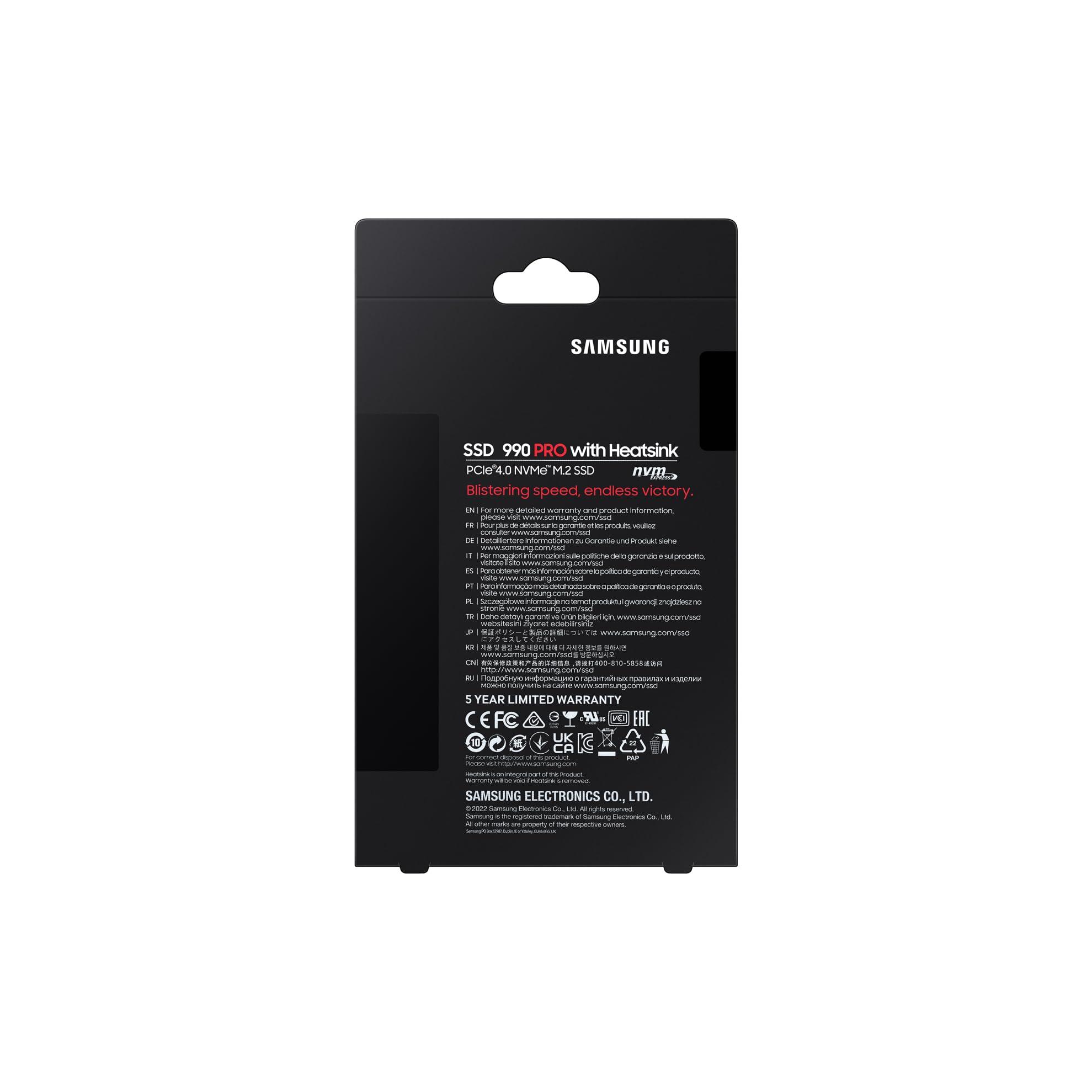 Samsung Memorie MZ-V9P4T0C 990 PRO SSD Interno con Dissipatore di Calore da 4TB, compatibile con Playstation 5, PCIe Gen 4.0 x4 NVMe M.2