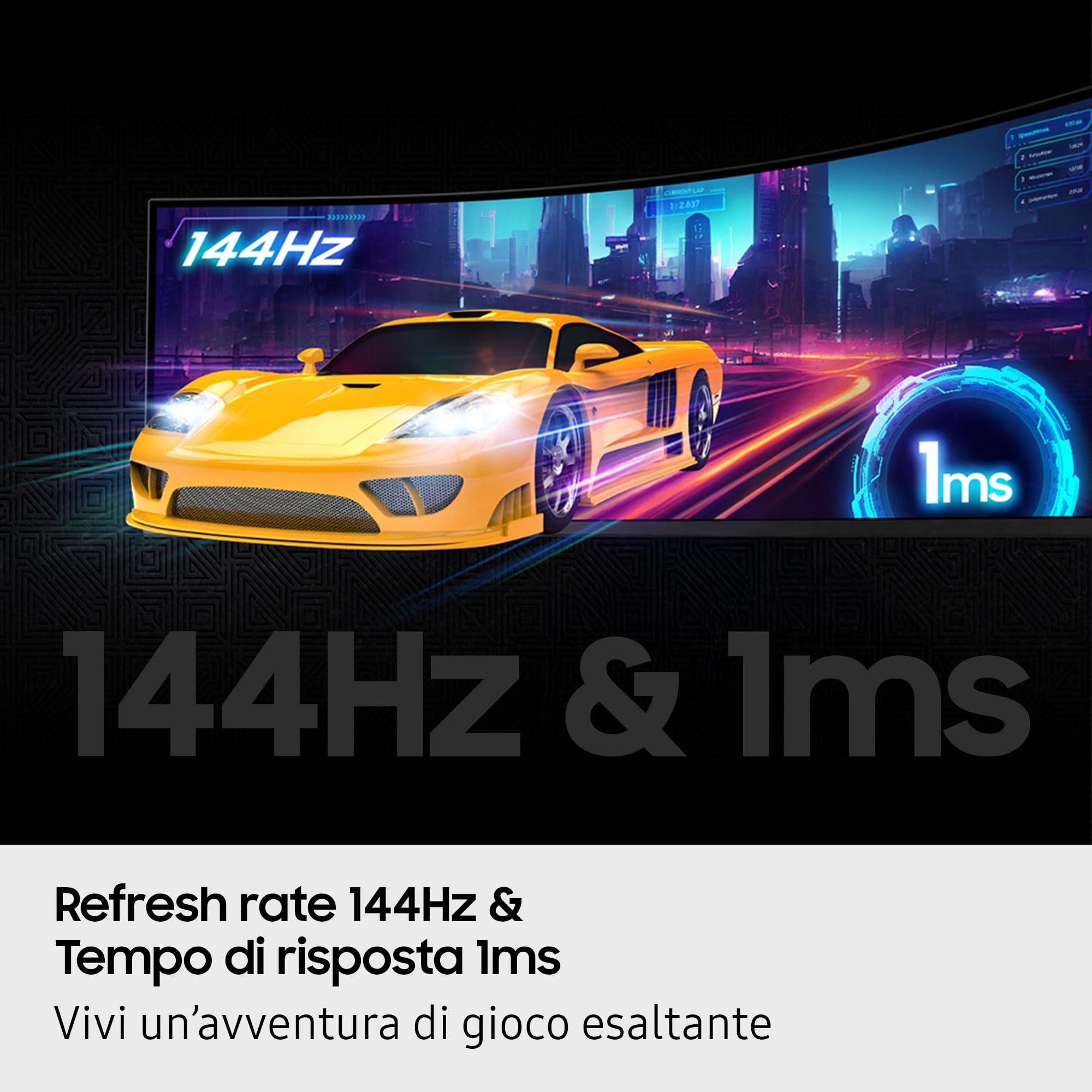 Samsung Monitor Gaming Odyssey G9 (S49FG912EU), Curvo (1000R), 49'', 5120x1440 (Dual QHD), 32:9, HDR 600, VA, 144Hz, 1ms (GtG), FreeSync Premium Pro, HDMI, DP, Ingresso Audio, HAS