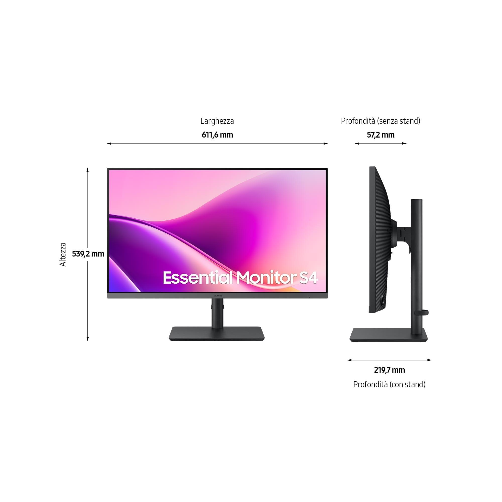 - Contenuto: 1x Samsung Monitor S43UF 27", Include cavo di alimentazione, cavo HDMI e cavo USB Type-C, Dimensioni con base (LxAxP): 61,16 x 53,92 x 21,97 cm