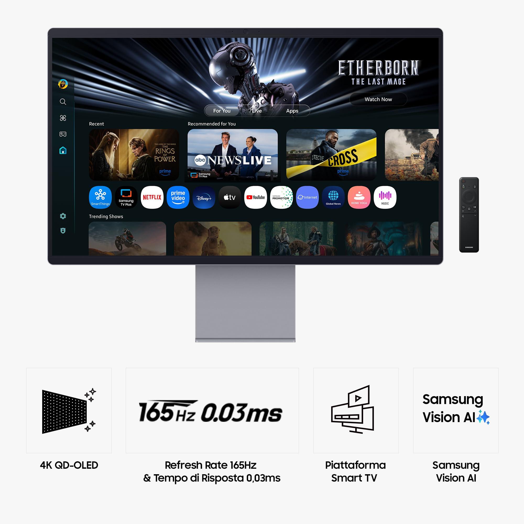 Samsung Smart Monitor M9 (S32FM900), Flat 32'', 3840x2160 (UHD 4K), Smart Hub con AI, Pannello QD-OLED, Office 365, Gaming Hub, Speaker Integrati, Telecomando, WiFi, HDMI, DP, USB-C