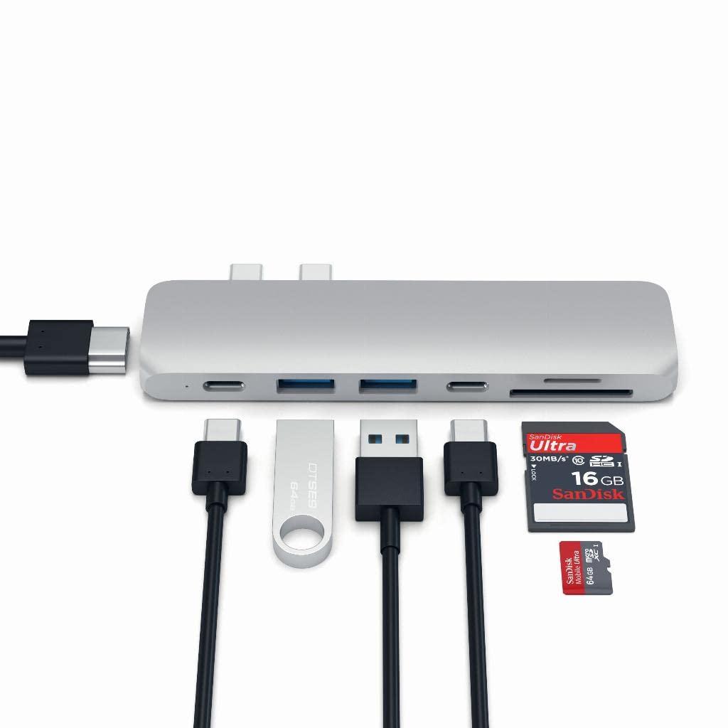 SATECHI 7 in 1 Hub Dual USB C Pro con Ricarica PD 87W, HDMI 4K@60Hz, USB-C Dati a 40Gbps, 2x USB-A 5Gbps e Lettore SD/MicroSD per MacBook Air & Pro M5 M4 – Argento