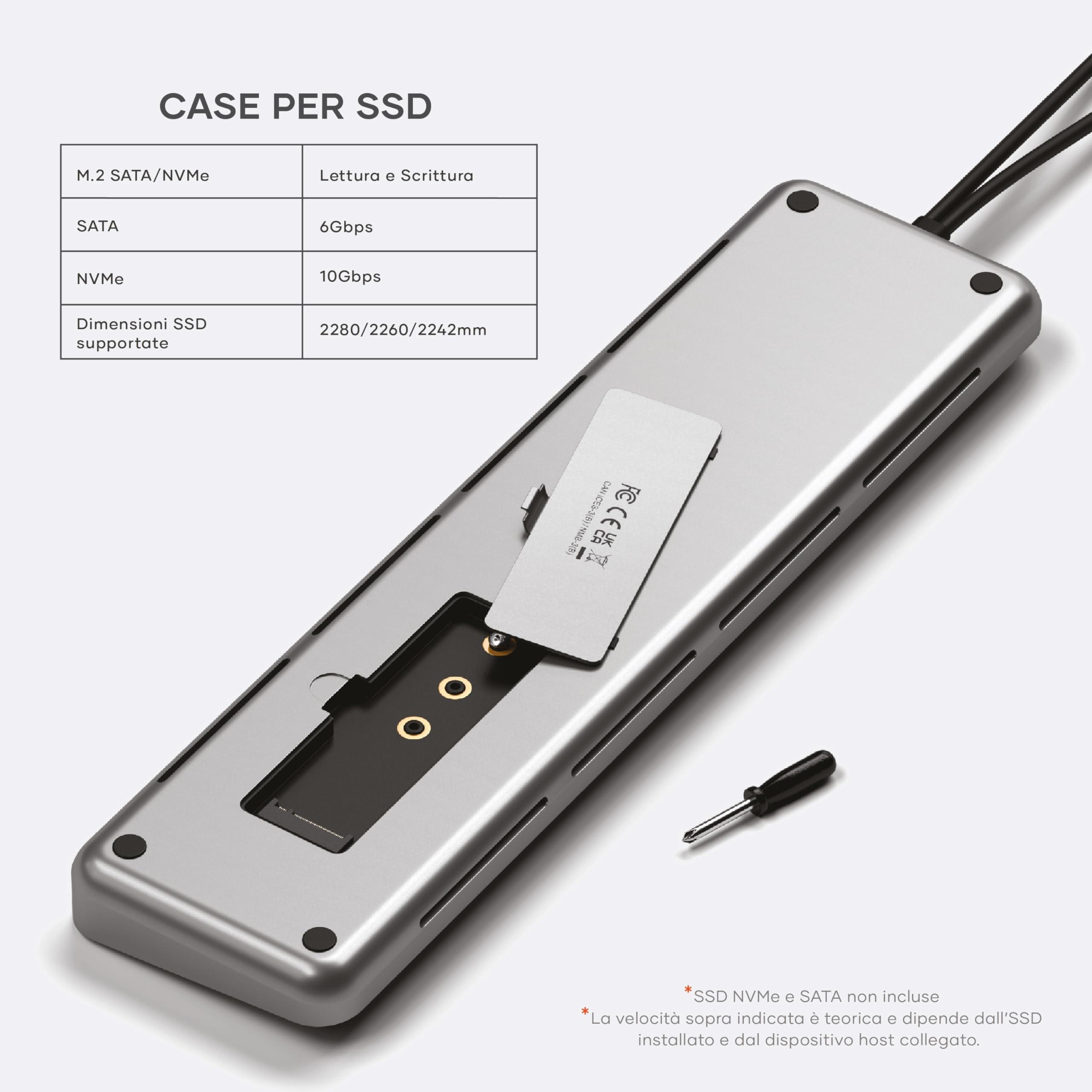 - ALLOGGIAMENTO SSD – la stazione di porte USB C include una carcassa SSD compatibile con SSD NVMe fino a 10Gbps e SSD SATA fino a 6Gbps, ideale per trasferimento dati, backup, recupero dati e archiviazione esterna.