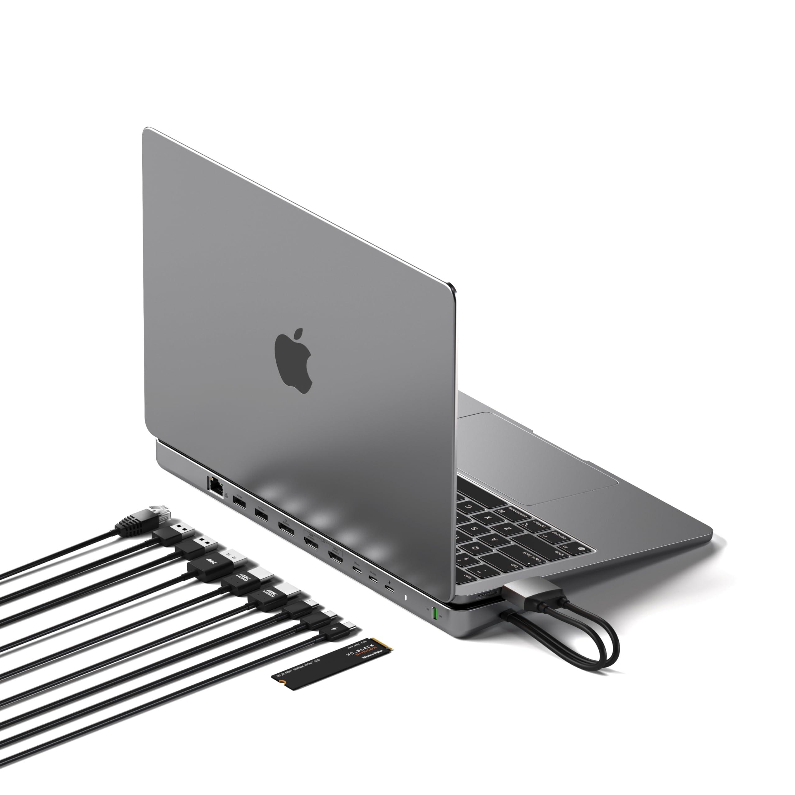 SATECHI Docking Station USB C Dual e Supporto 10 in 1 con Alloggiamento SSD SATA/NVMe, 2x HDMI 4K, DisplayPort, Ricarica PD 75W, Ethernet, USB-A/USB-C 10Gbps – per MacBook Air & Pro M5 M4