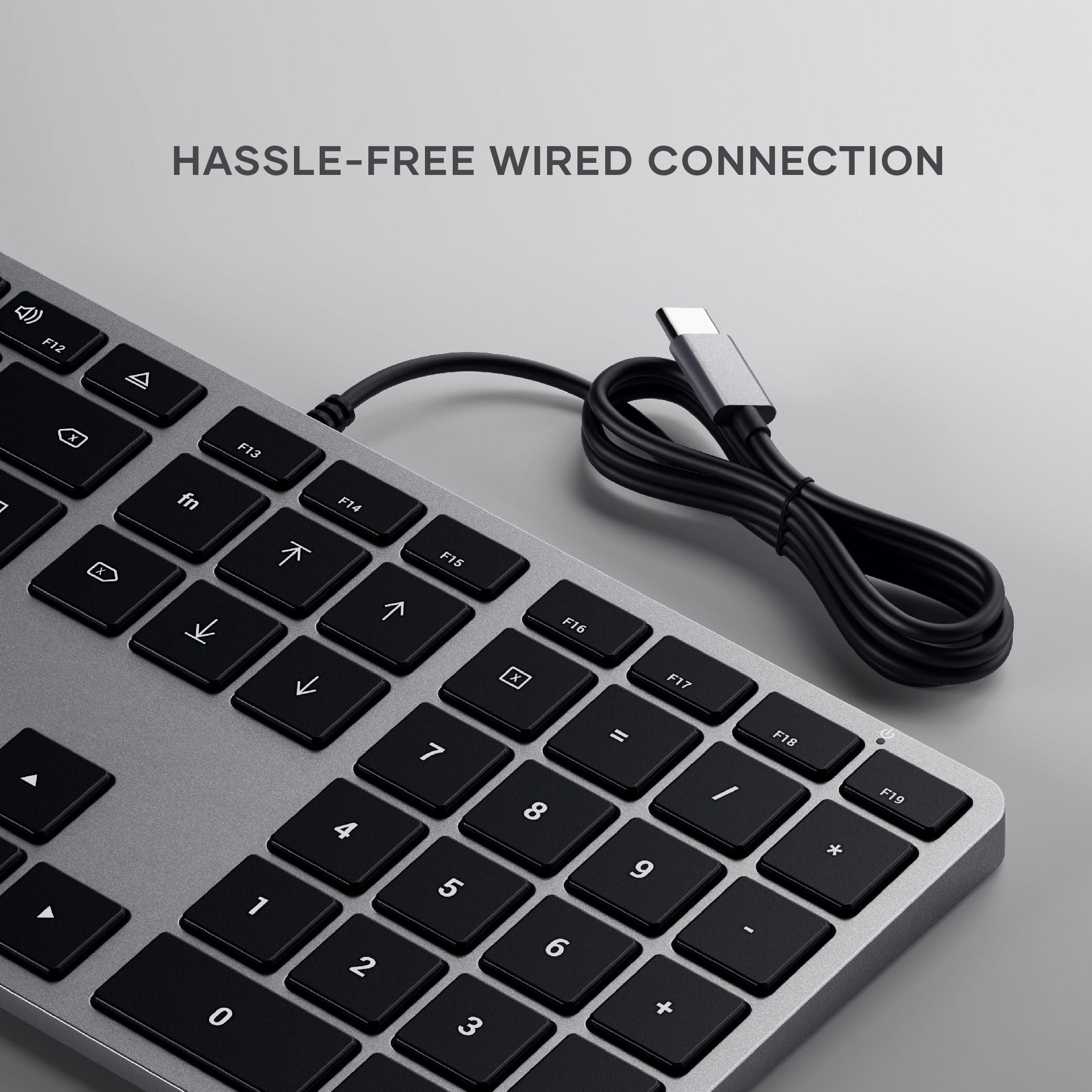 Satechi Slim W3 Tastiera Retroilluminata Cablata con Tastierino Numerico, Layout QWERTY Stati Uniti, Connessione USB-C – per MacBook Air e Pro M5 M4, Mac Mini, iPad Air e Pro, iMac e altro – Grigio