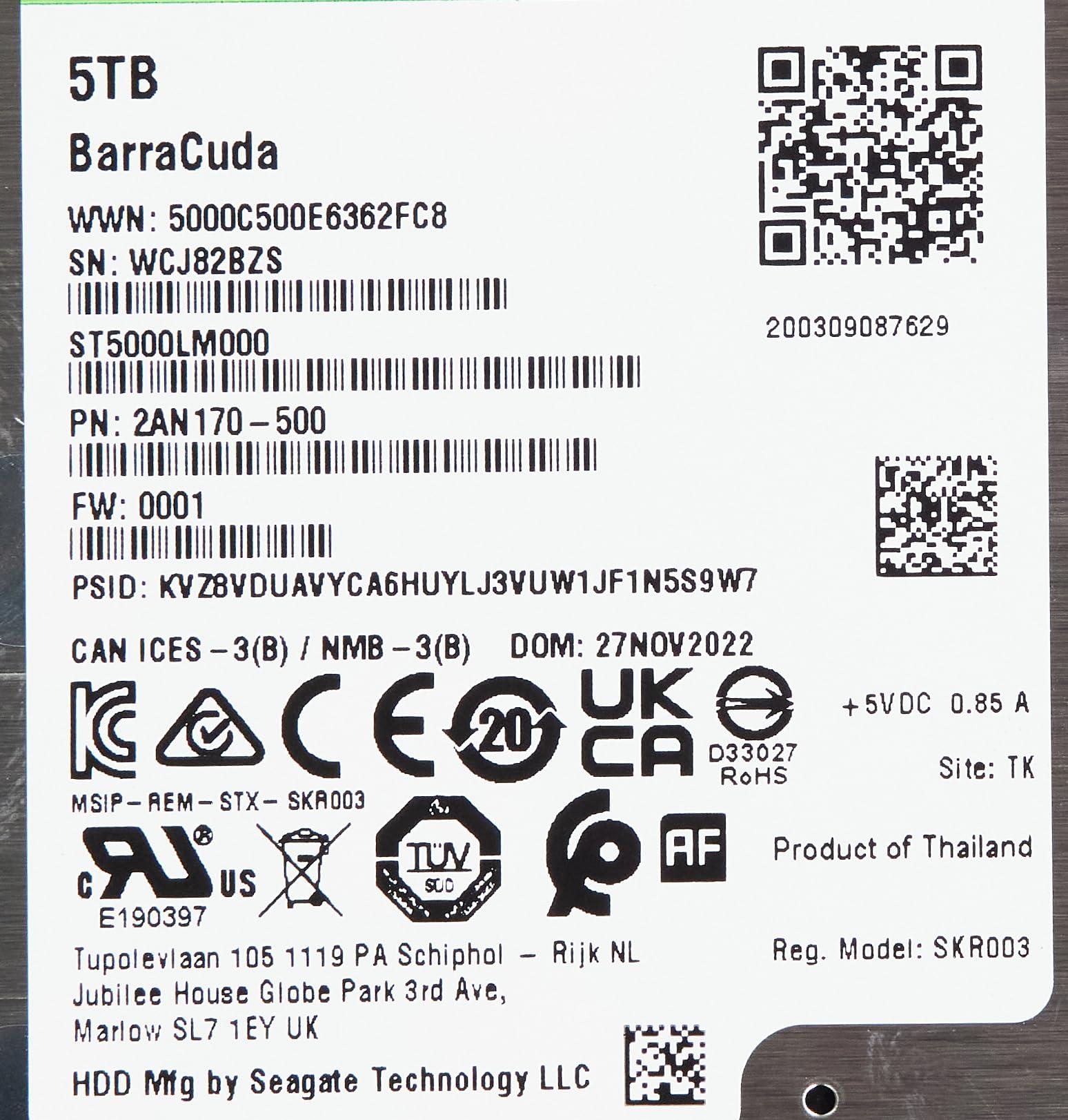 Seagate BarraCuda, 5 TB, Hard Disk Interno, SATA da 6 GBit/s, 2,5", 5.400 RPM, Cache da 128 MB per PC Desktop e PC Portatili (ST5000LM000)