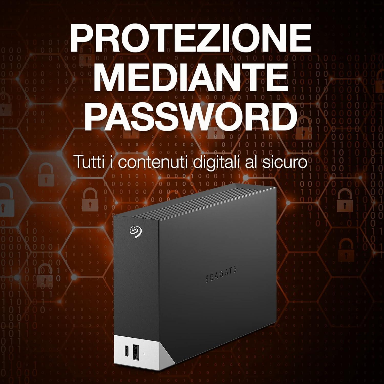- Un'unità disco esterna protetta da password con hub USB per mantenere tutti i contenuti digitali al sicuro