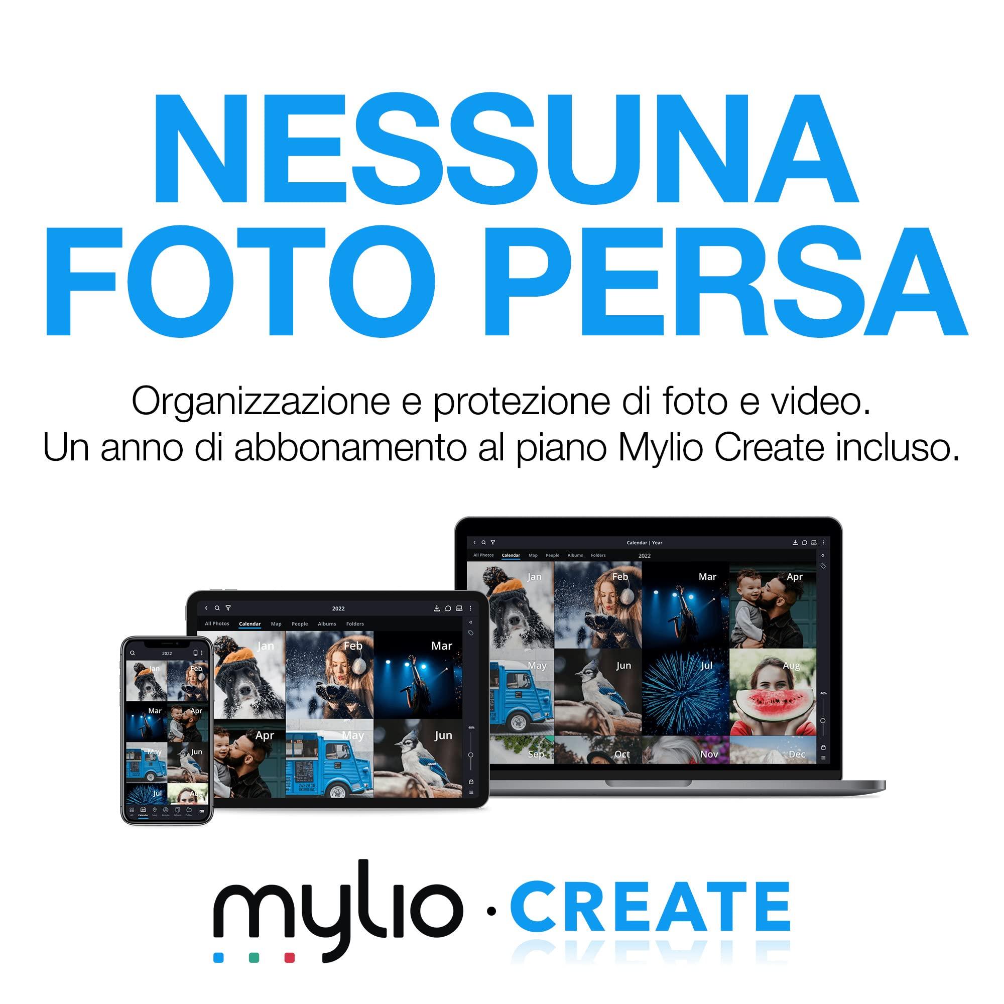 - Foto sempre in ordine grazie all'abbonamento gratuito a Mylio Photos e la comodità dei backup automatici con la prova gratuita del piano di Dropbox Backup (Da riscattare entro un anno dalla registrazione dell'unità. Non disponibile in tutti i paesi. Gli abbonamenti di prova sono soggetti a modifica in base al rivenditore o alle condizioni. Fare riferimento alla confezione dell'unità per l'offerta ufficiale).