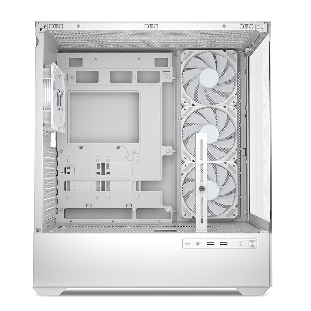 - Flusso d'aria ideale per i case PC in vetro Per un flusso d'aria ideale, l'AK6 RGB è dotato di quattro ventole PWM LED RGB addressable da 120 mm preinstallate, tre delle quali hanno un flusso d'aria inverso per aspirare l'aria nel case attraverso il pannello laterale. Per un flusso d'aria ancora maggiore, c'è spazio per un massimo di nove ventole.