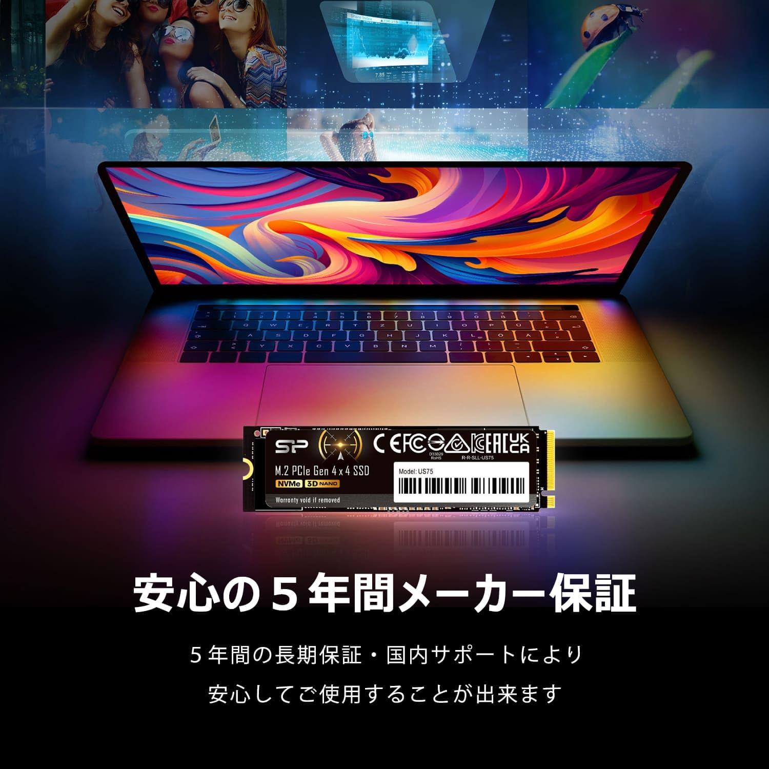 Silicon Power SP Silicon PowerSSD 4TB US75 Series M.2 2280 NVMe4.0 Gen4 PCIe M.2 Max Read 7000MB/s Max Write 6500MB/s 5 anni di garanzia SP04KGBP44US7505