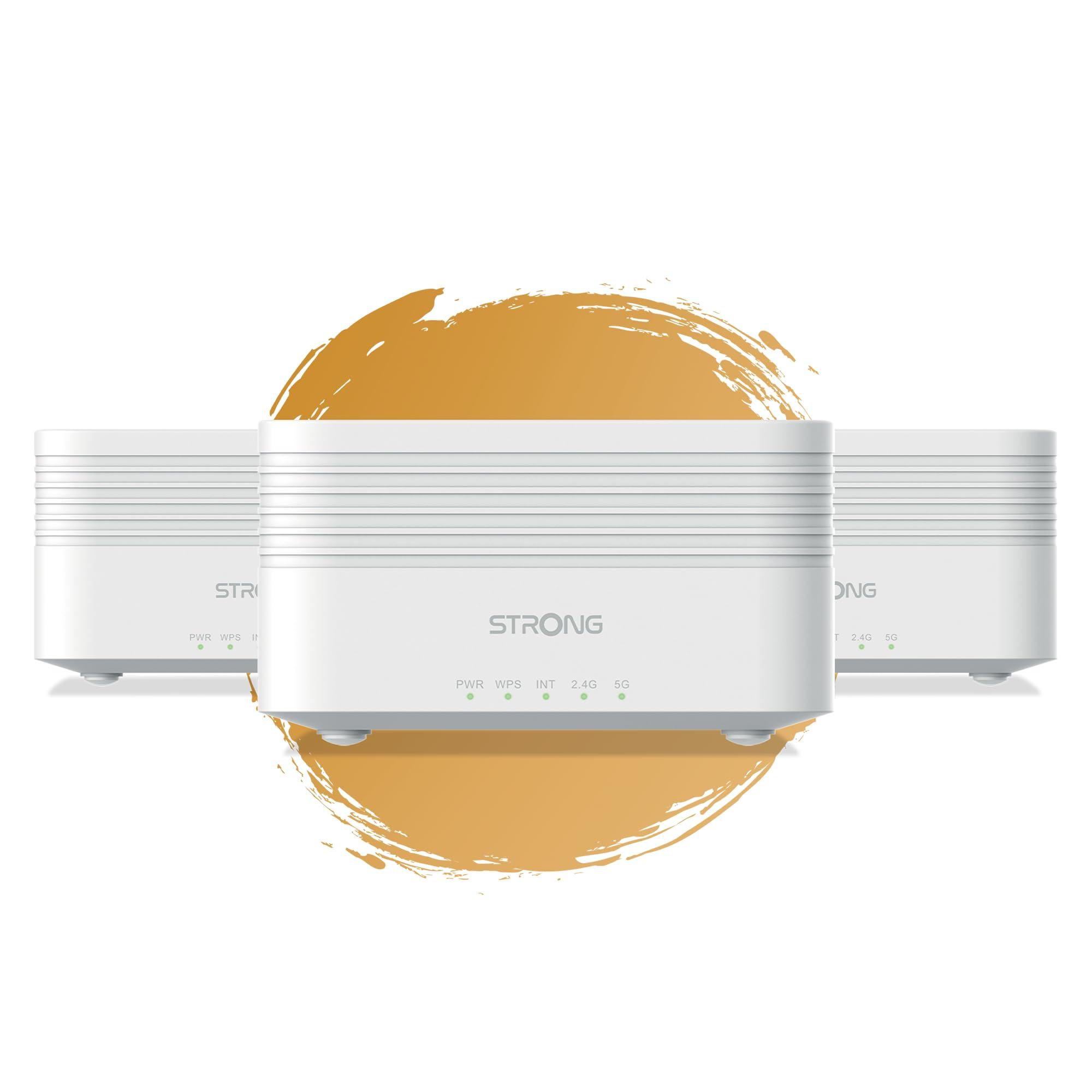 STRONG - 3x Atria Mesh Kit AX3000 - Amplificatore WiFi 6 - Add-on - Fino a 1050 m² di copertura WiFi 6 aggiuntiva - Per tutti le Modem/Router - Dual Band 2,4 GHz + 5 GHz - Porte LAN Gigabit - Bianco