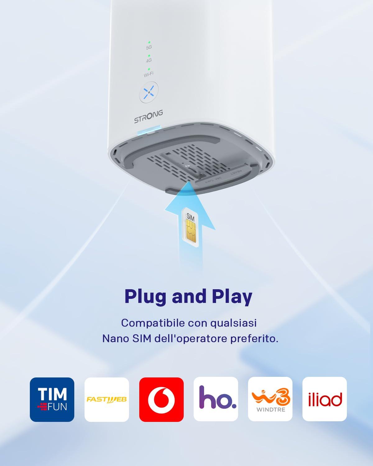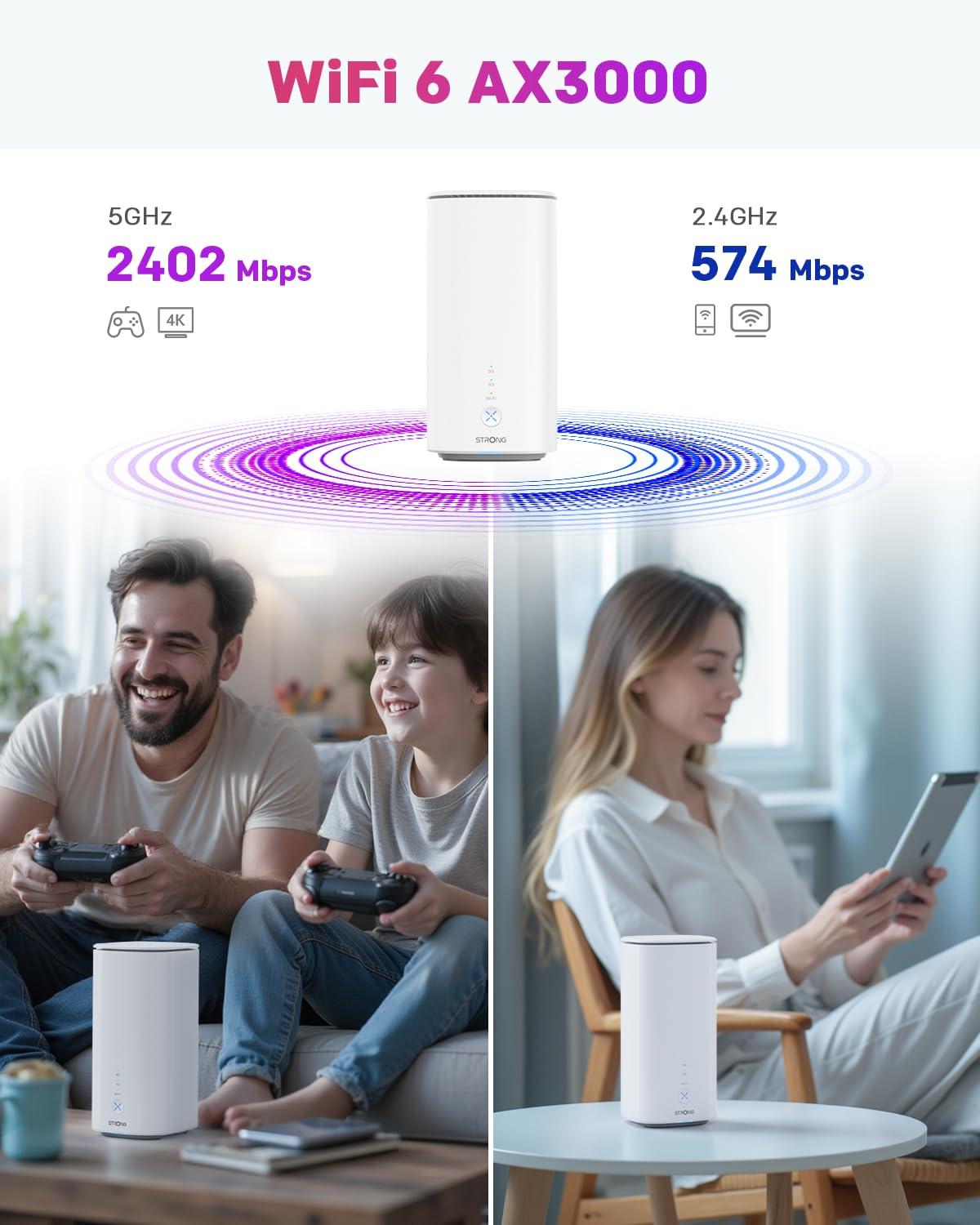 STRONG Router 5G con SIM – WiFi 6 AX3000 CPE – Velocità fino a 3.2 Gbps – 2.5GE WAN/LAN & 1GE LAN – RJ11 VoIP/VoNR – Compatibile Mesh – Chipset Qualcomm (5GROUTERAX3000)