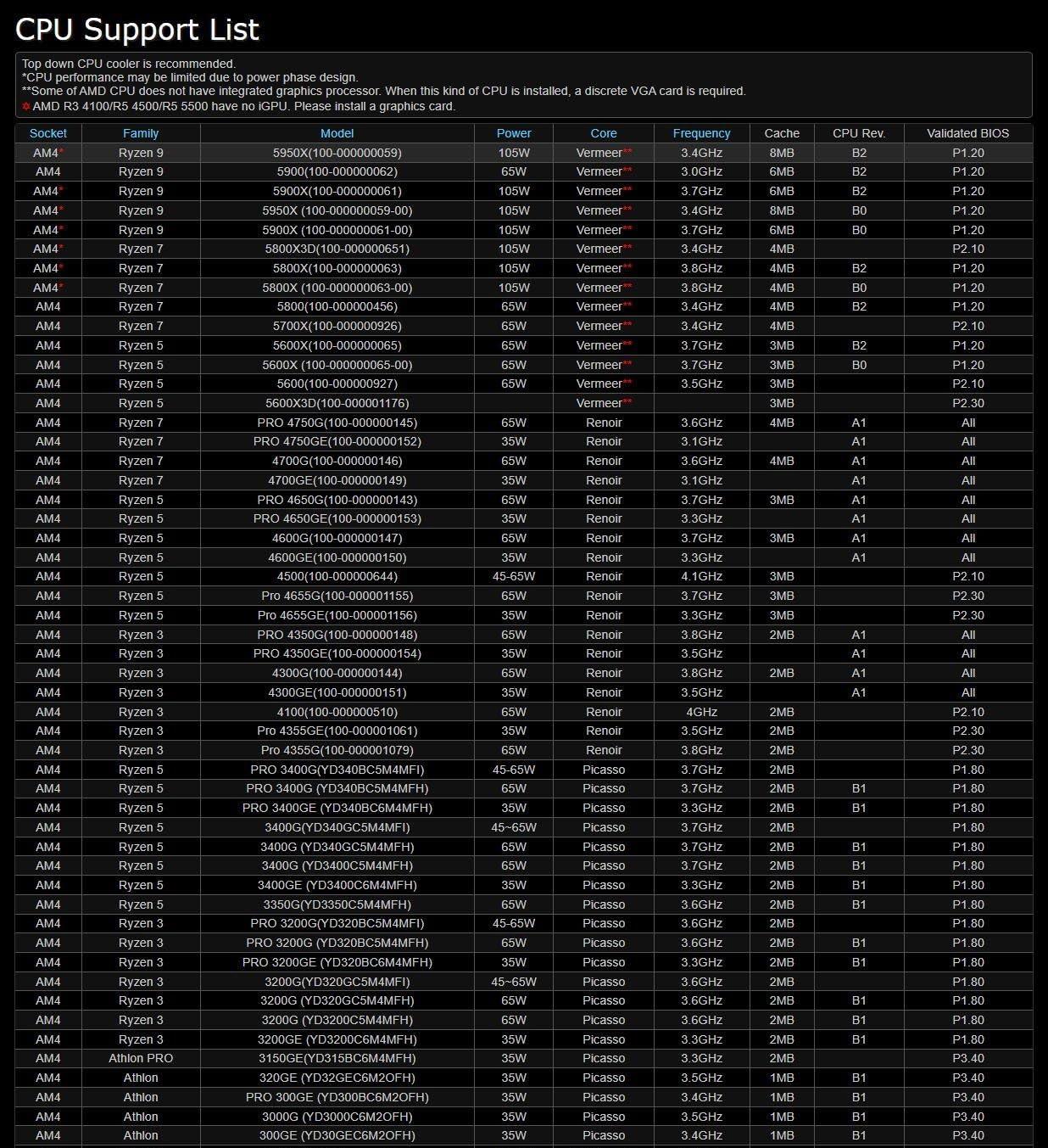 - Supporta i processori desktop AMD AM4 Socket Ryzen 3000, 4000 serie G e 5000. Non compatibile con AMD Ryzen 5 3400G e Ryzen 3 3200G