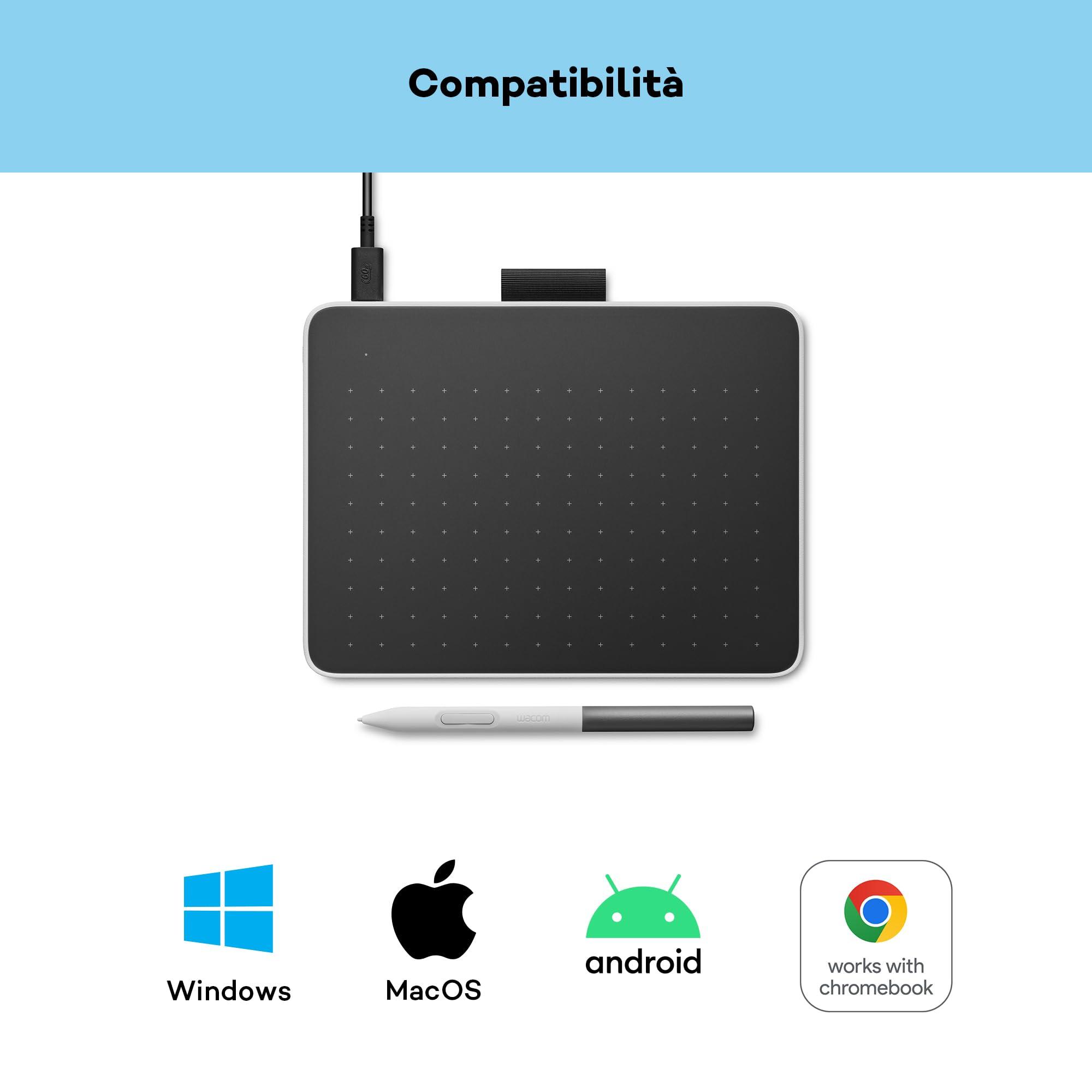 Tavoletta con penna Wacom One S inclusa penna EMR senza batteria, connessione Bluetooth, per Windows, Mac, Chromebook e Android. Ideale per creativi principianti, per il disegno in digitale