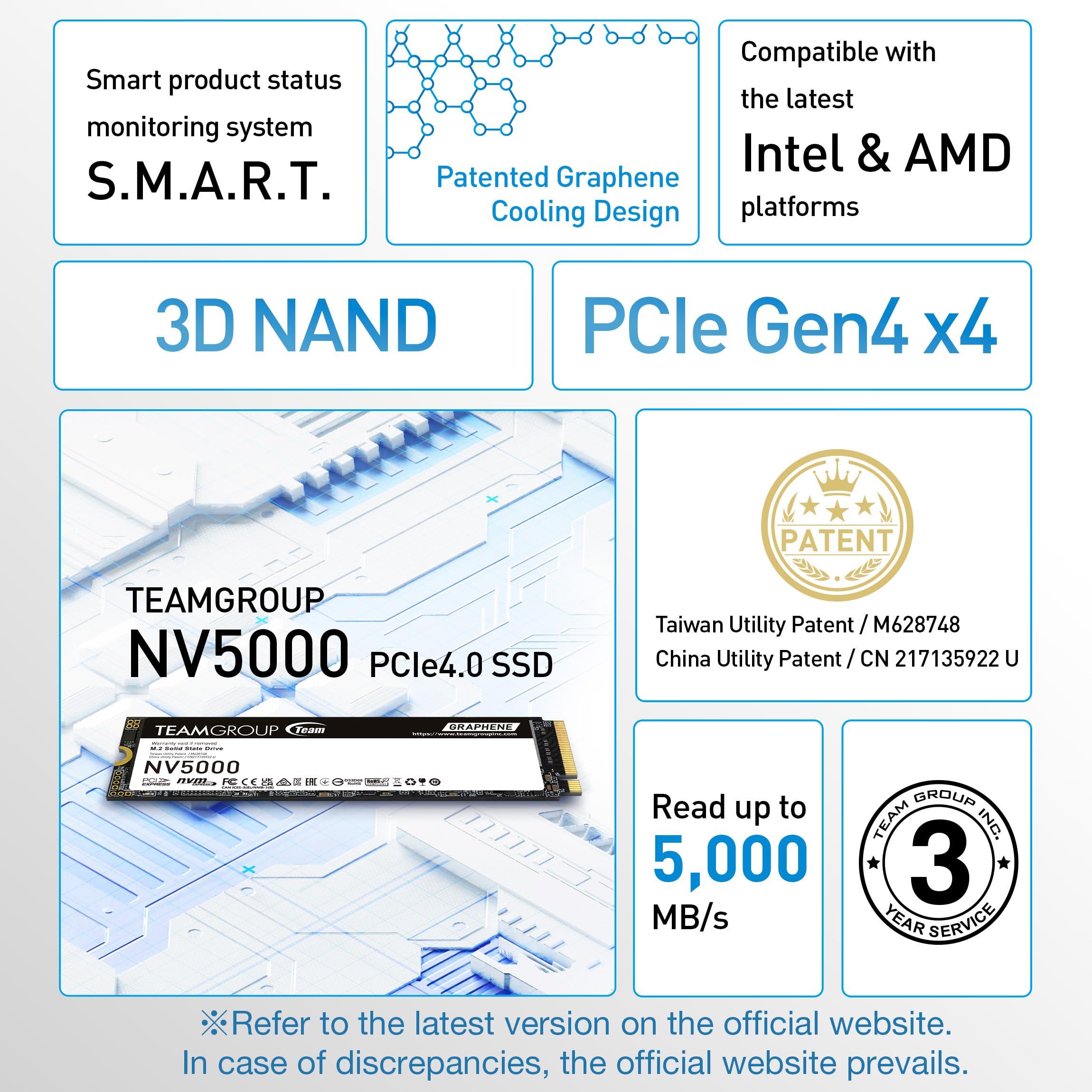 Team Group NV5000 - SSD - 1 TB - intern - M.2 2280 - PCIe 4.0 x4 (NVMe)