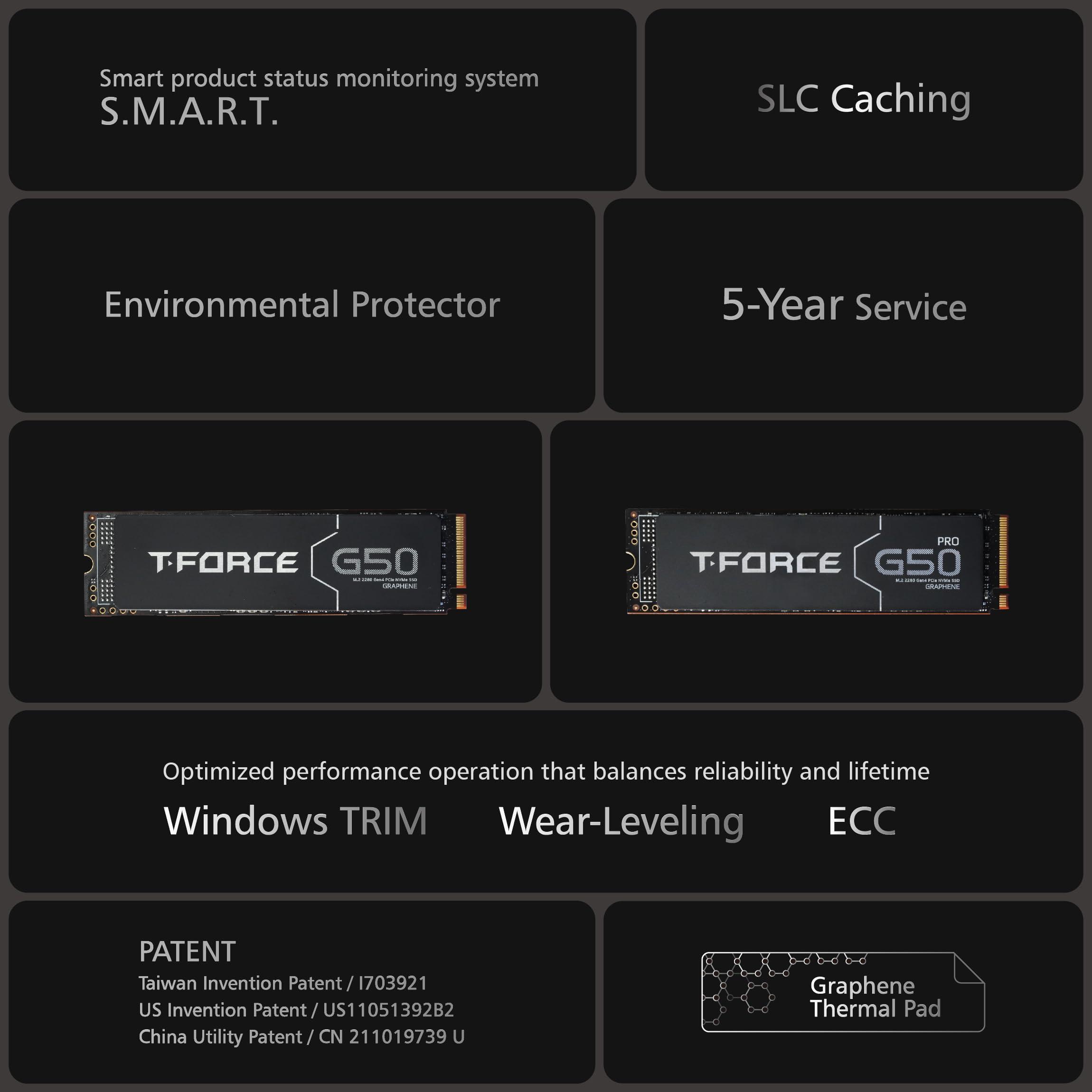 TEAMGROUP T-FORCE G50 1TB 2TB SLC Caching 3D TLC NAND NVMe InnoGrit PCIe Gen4x4 M.2 2280 Gaming SSD con dissipatore di calore in grafene ultrasottile Lettura/scrittura 5000/4800 MB/s TM8FFE001T0C129 Una nuova scelta per l'aggiornamento del gioco