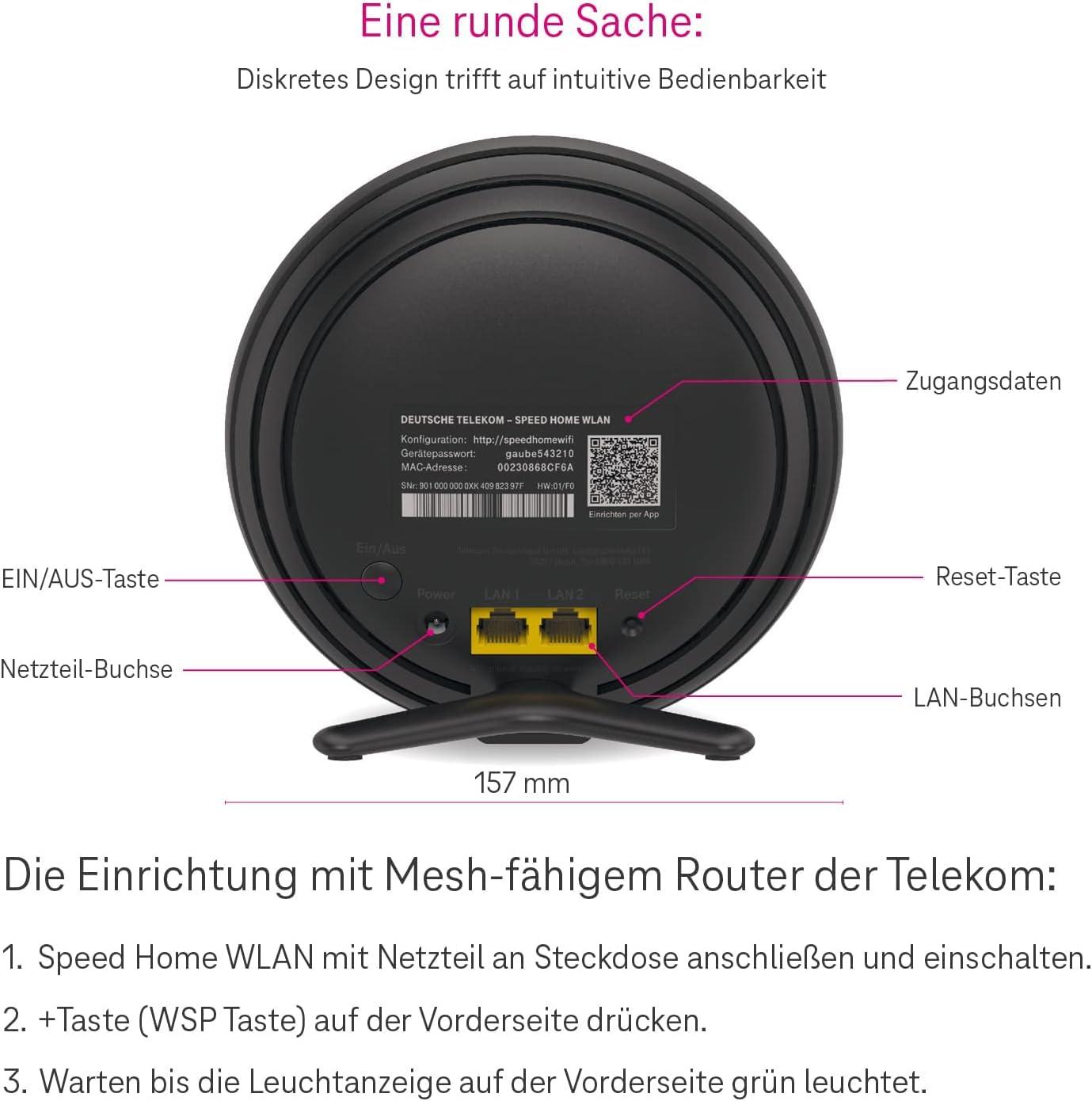 Telekom Speed Home WLAN 2° Gen | Ripetitore Wi-Fi 6 Mesh per rete domestica forte | fino a 4.800 Mbit/s | Plug & Play per WPS | 2× LAN
