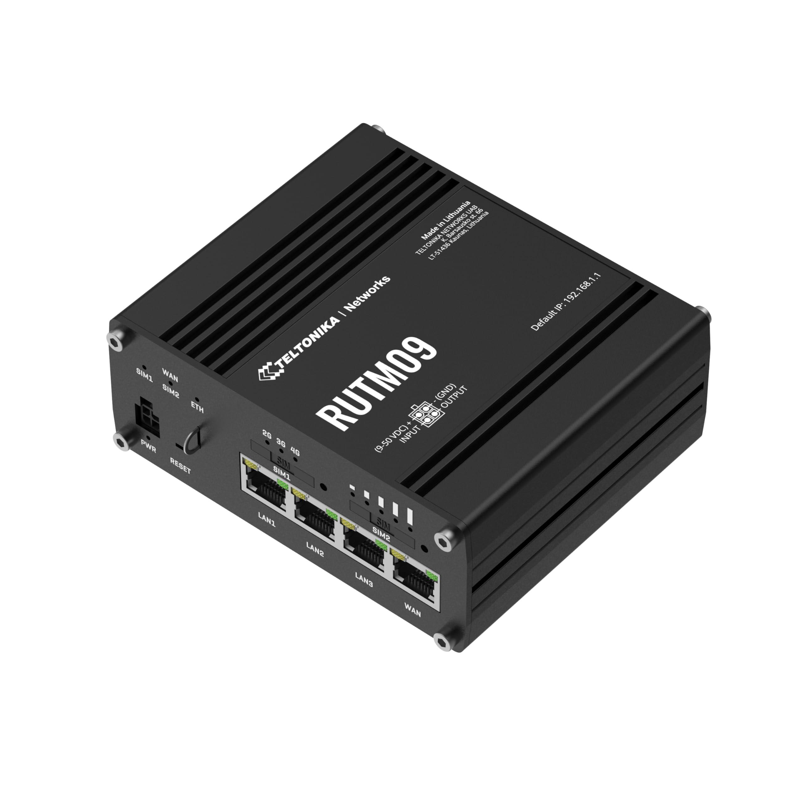 The RUTM09 is a wireless 4G LTE router developed for high-cellular-speed applications. It comes with Cat 6 and dual SIM capabilities, enabling the device to support speeds of up to 300 Mbps and functions like carrier aggregation and failover. Additionally, the RUTM09 comes with four Gigabit RJ45 ports and includes GNSS, enabling GPS tracking for precise location detection. These features make the RUTM09 an exceptional choice for ensuring non-interruptible network connectivity for mobile applications or those requiring tracking.