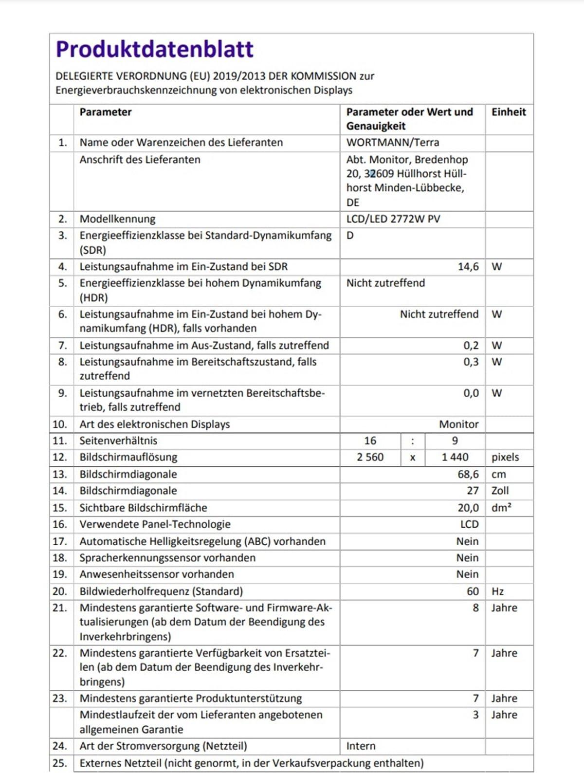 Terra LCD/LED 2772W PV Nero Monitor con USB-C DisplayPort HDMI 27" diagonale schermo 2560 x 1440 (WQHD) Risoluzione dello schermo IPS Pivot VESA