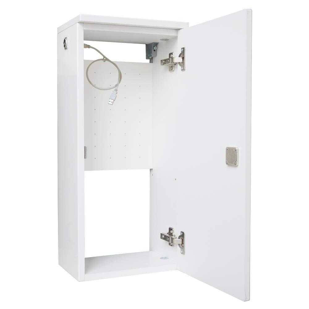 - Porta anteriore destra con cerniera (trasformabile a sinistra) e chiudibile, 2 chiavi incluse nella piastra di design superiore, in colore bianco lucido.