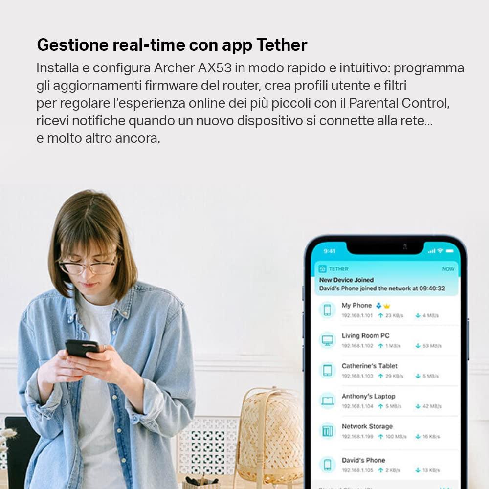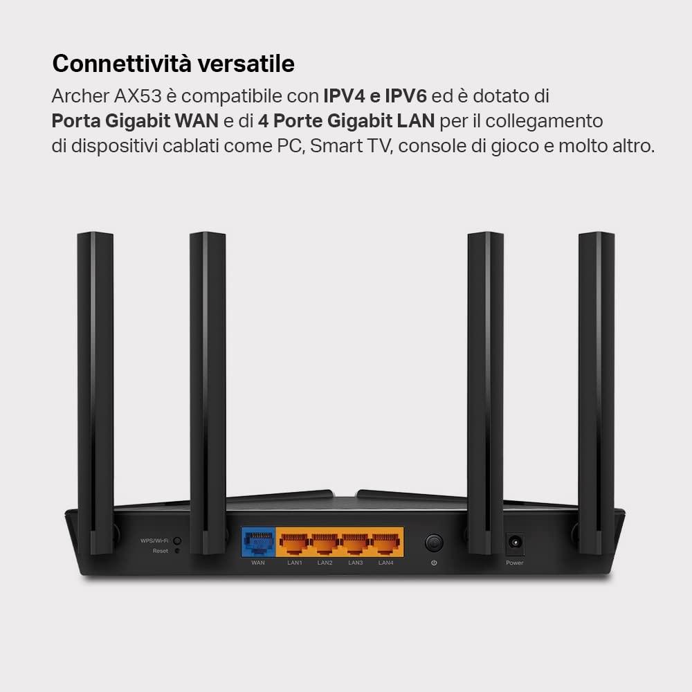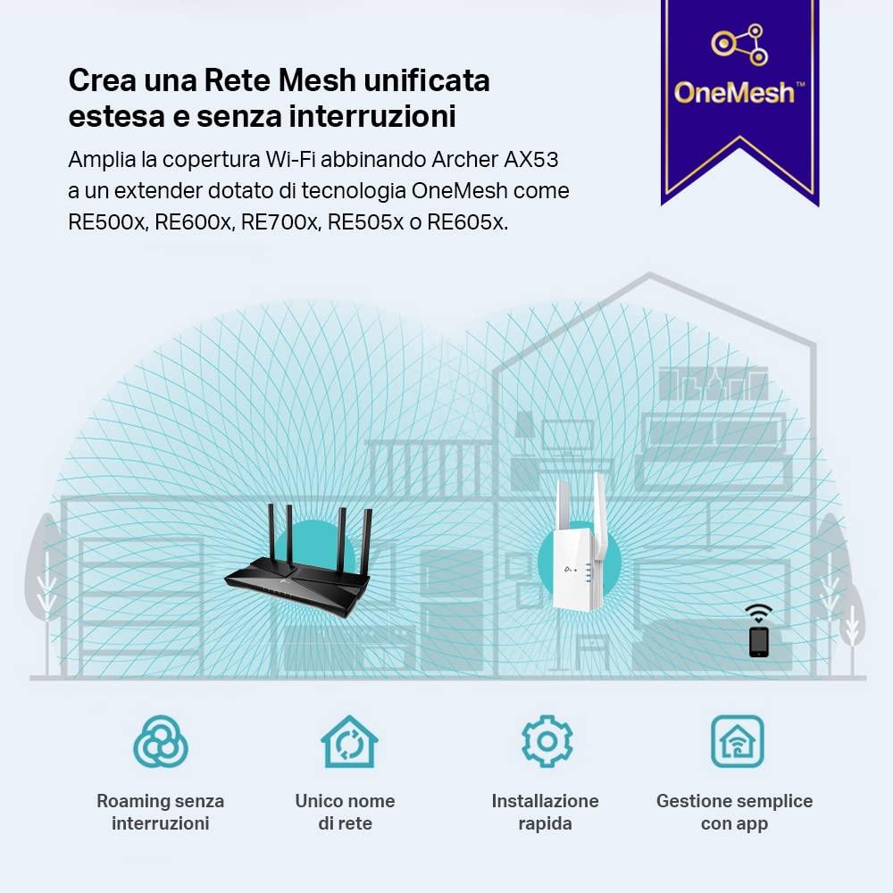 TP-Link Archer AX53 Router WiFi 6 Dual-Band AX3000, 2402Mbps su 5 GHz e 574 Mbps su 2,4 GHz, WPA3, Tecnologia TP-Link HomeShield, OneMesh, Compatibile con Alexa