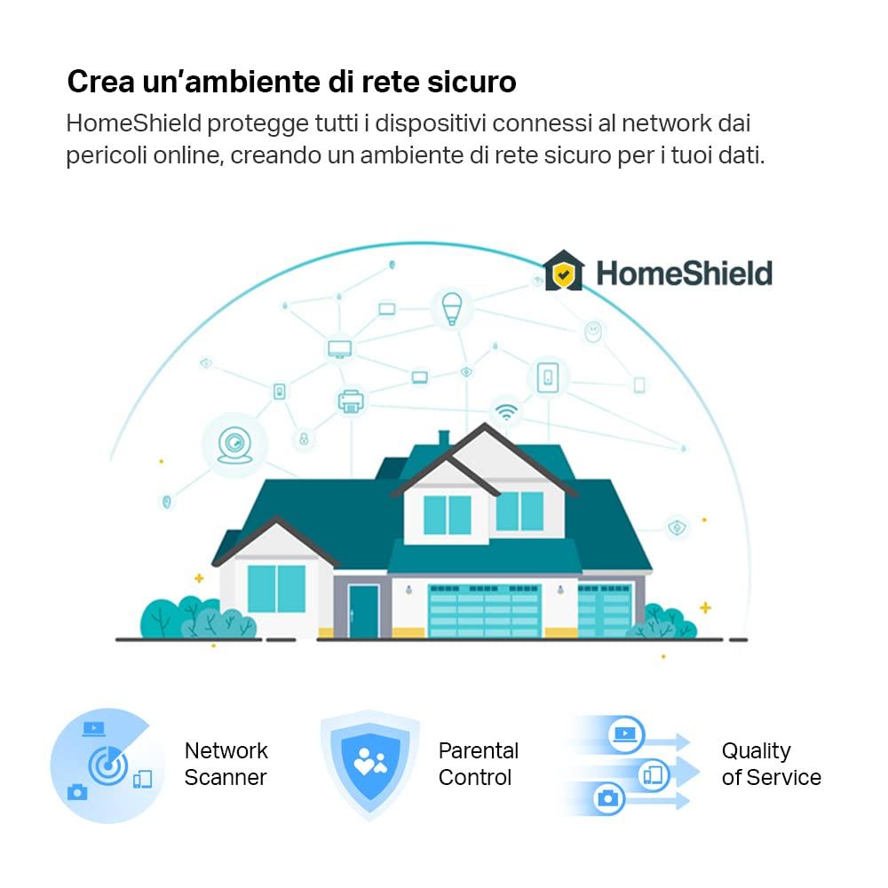 - [HomeShield] – Il servizio premium per la sicurezza della rete di TP-Link protegge il tuo network con funzionalità avanzate e sistemi di protezione IoT