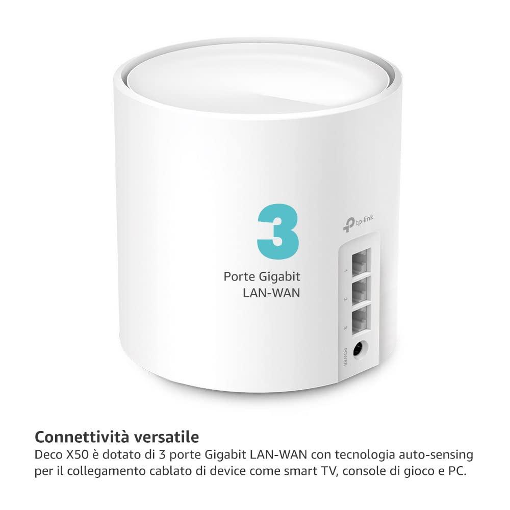 TP-Link Deco X50 Mesh WiFi 6 AX3000Mbps Dual Band, Copertura fino a 600m², Ottimale per Casa Grande, Connetti più di 150 Dispositivi, 3 Porte Gigabit, OFDMA, MU-MIMO, WPA3, HomeShield, 3pz