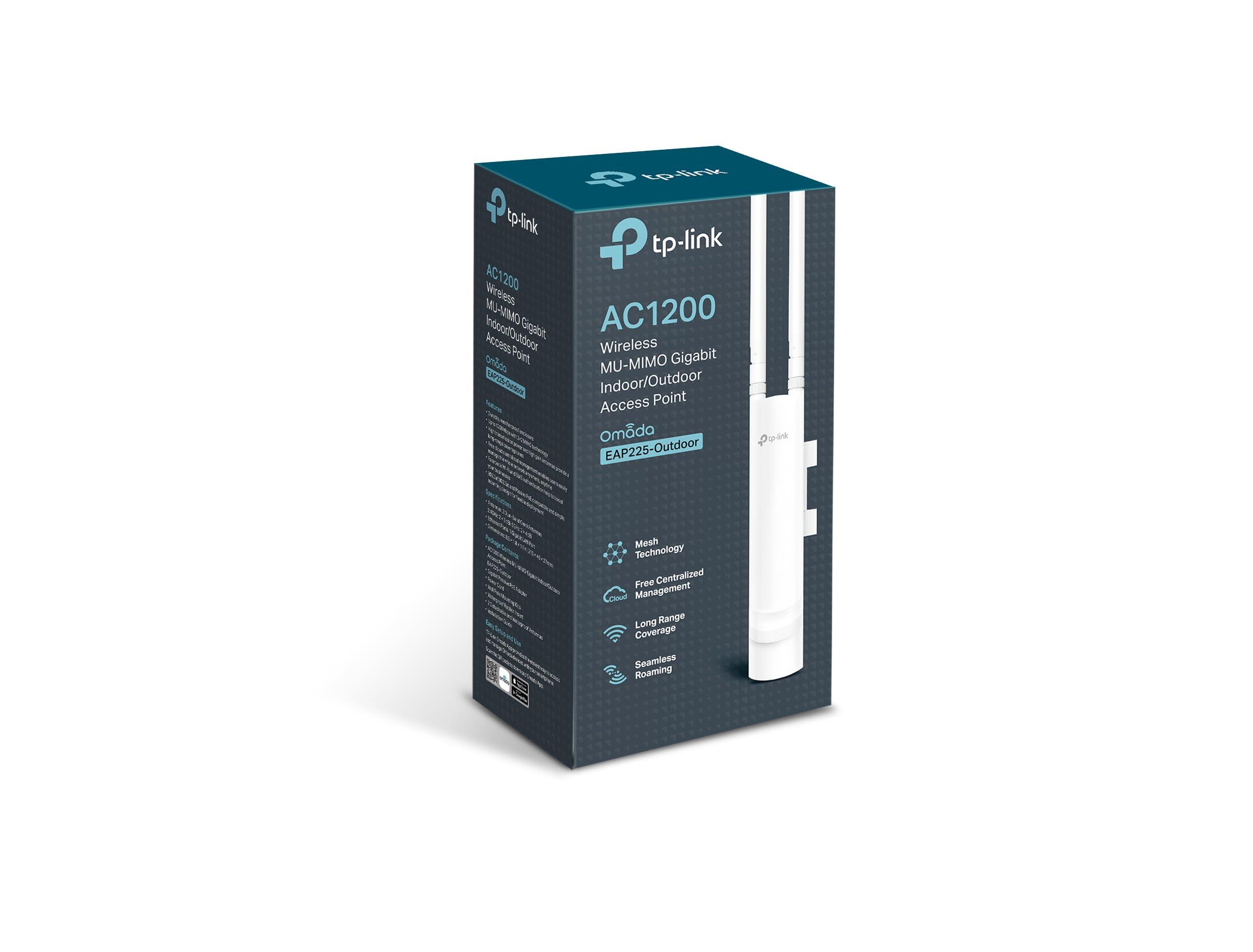 TP-Link EAP225 Outdoor Access Point MU-MIMO, Wireless Indoor/Outdoor AC1200Mbps, IP65, PoE 802.3af/at o Passive PoE, Tecnologia Omada Mesh, Copertura a Lungo Raggio, Gestione Centralizzata
