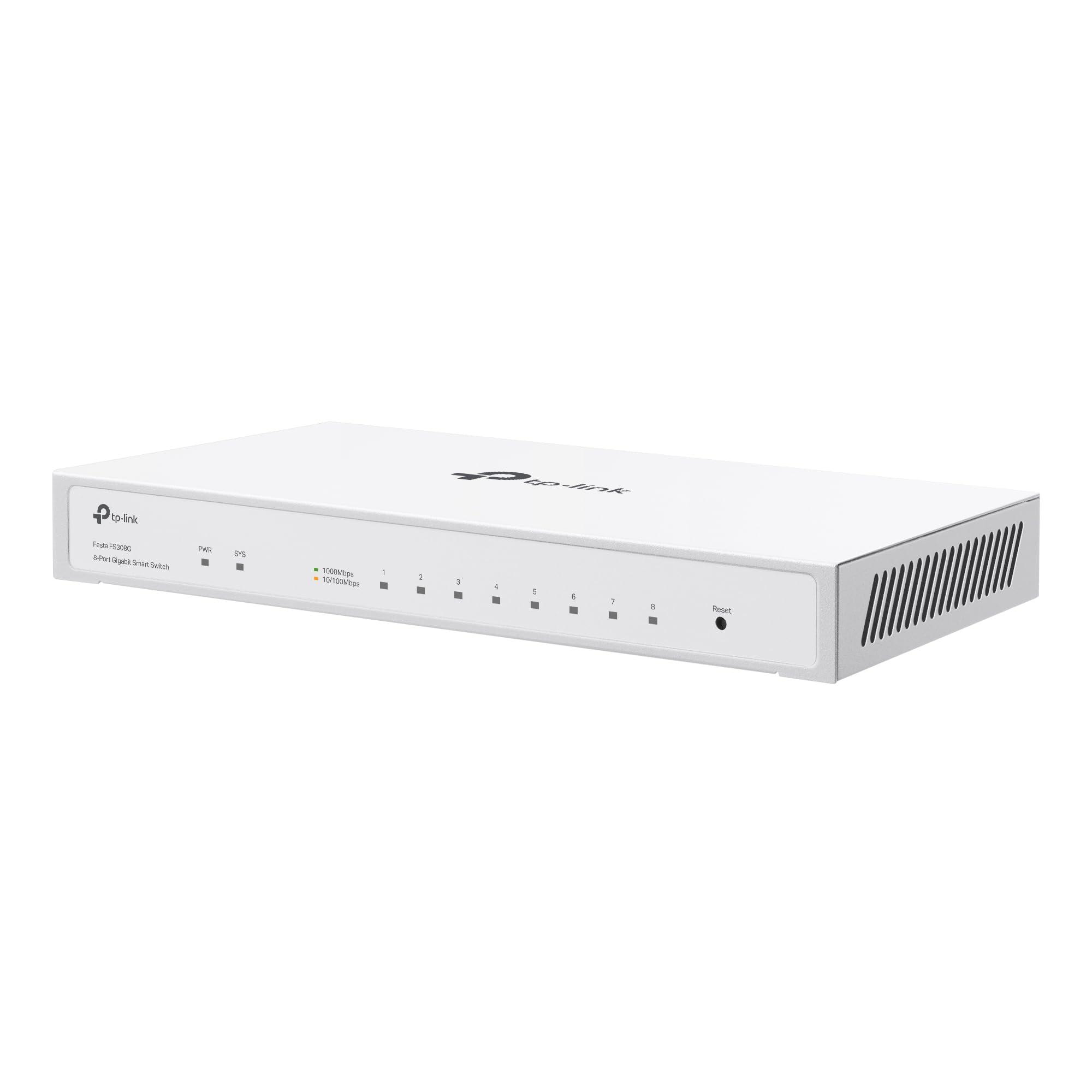 TP-Link Festa Festa FS308G - Switch Gigabit a 8 porte, porta di ingresso PoE opzionale, gestione cloud gratuita, routing statico, VLAN, ACL, IGMP Snooping, Design senza ventole