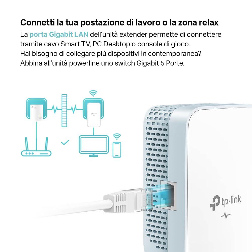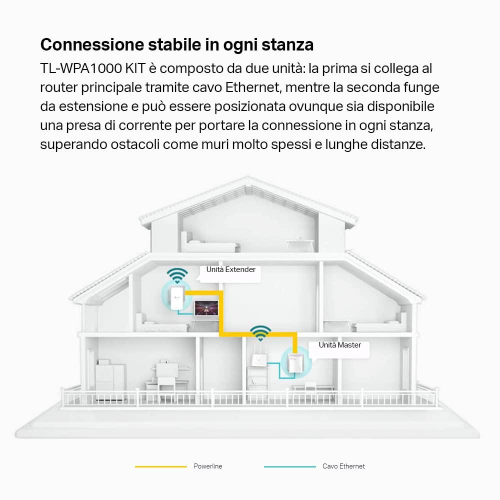 - Powerline Homeplug AV2 - Estendi la rete domestica sfruttando l'impianto elettrico per trasmettere datiad alte frequenze con velocità fino a 1000Mbps